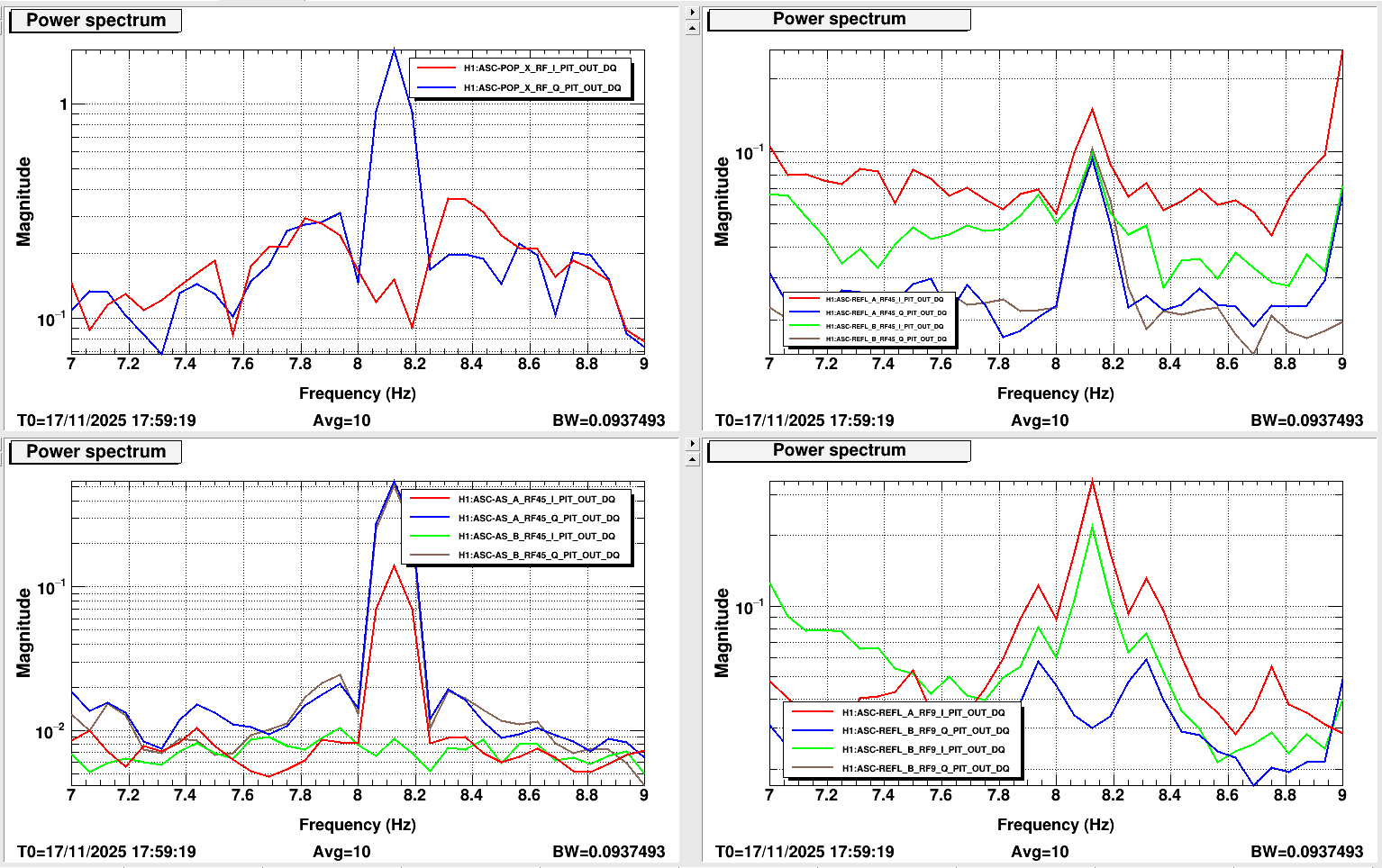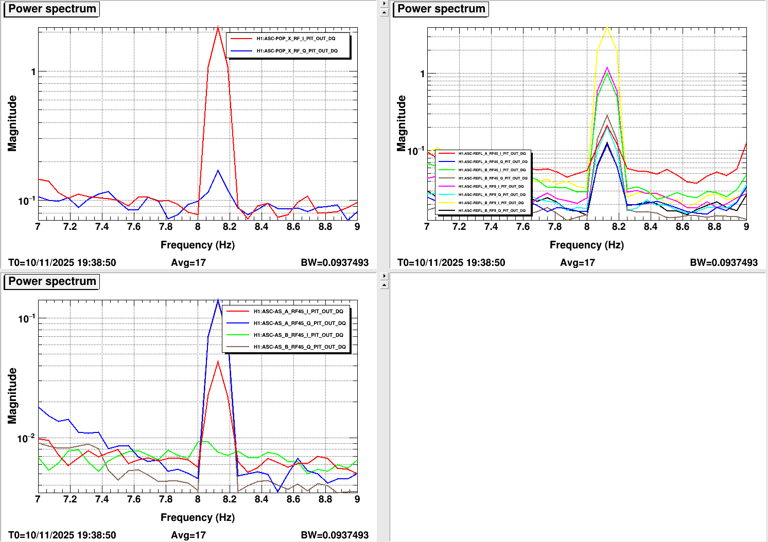 I drove a pitch line from PR3 M3 and SR3 M3 at 8.125 Hz with the ASC notches on. I was able to see at signal with a 10 ct drive on PR3 pitch and 60 ct drive on SR3 pitch.