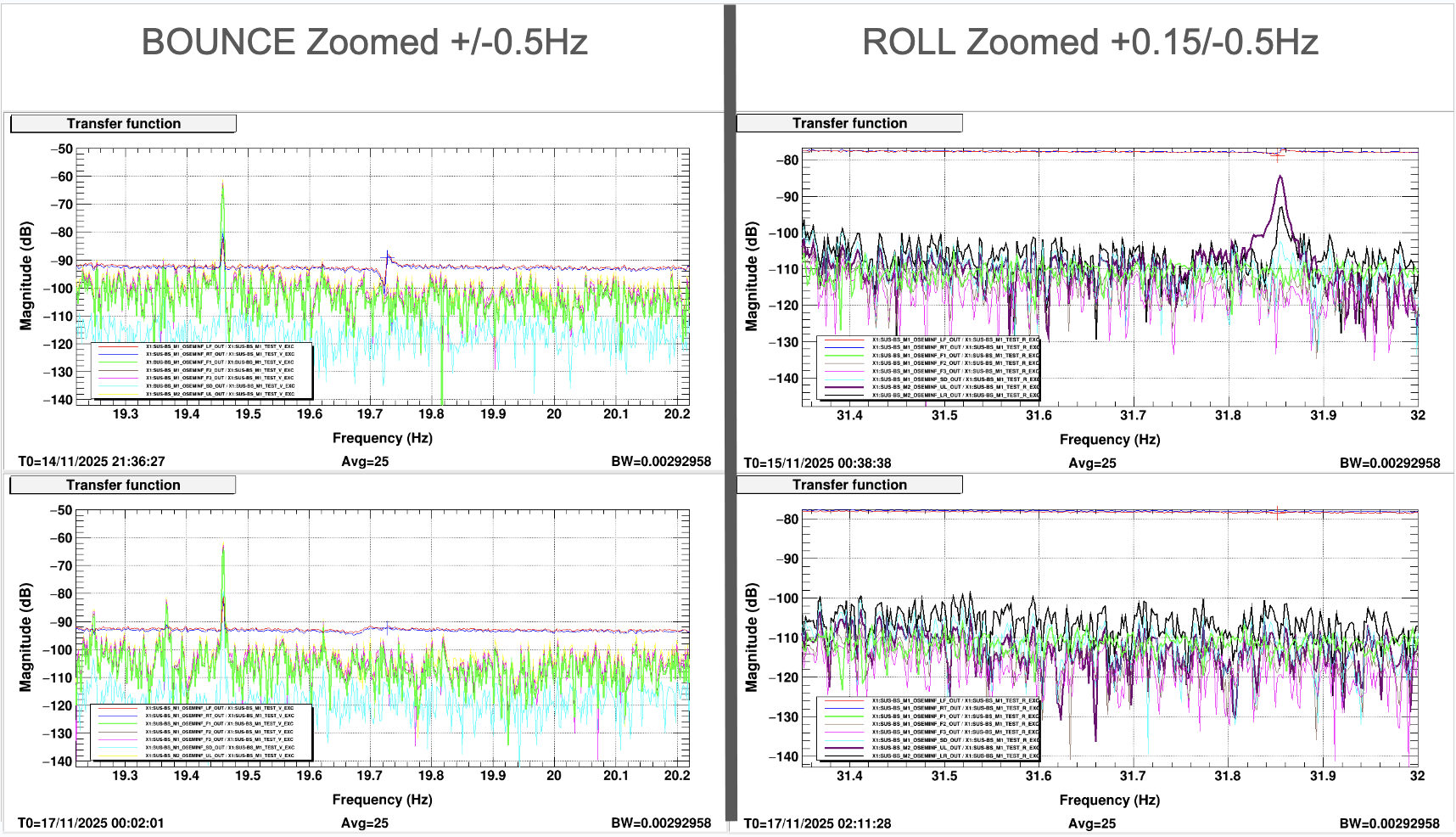 Both JM1 and JM3 optics have been suspended and coarse balanced, both in pitch and yaw. I will fine tune it once they are plugged-in for electronics testing.