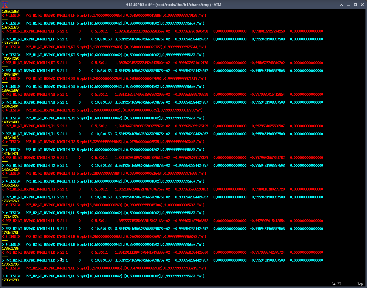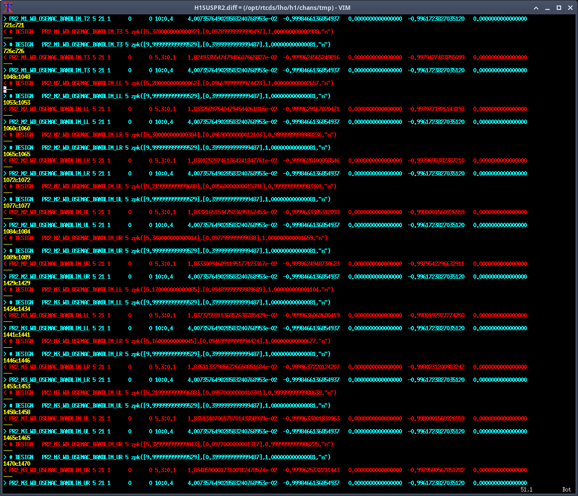 Note -- any quote of OSEM sensors (i.e. the OSEM basis OSEMINF_{OSEM}_OUT_DQ and EULER basis DAMP_{DOF}_IN1_DQ) in [um] are correctly calibrated and the ground motion sensors (and any band-limited derivatives thereof; the BLRMS and PeakMons) are similarly well-calibrated.