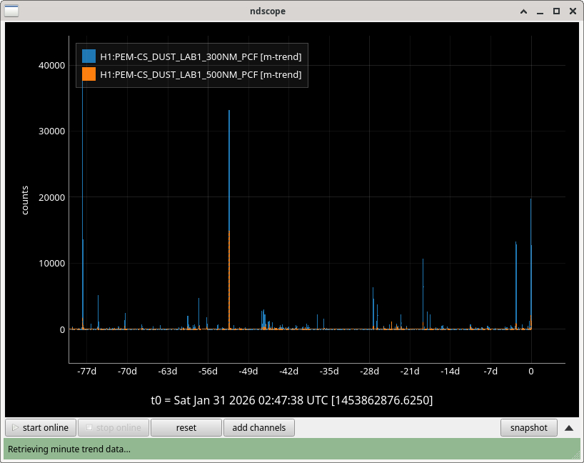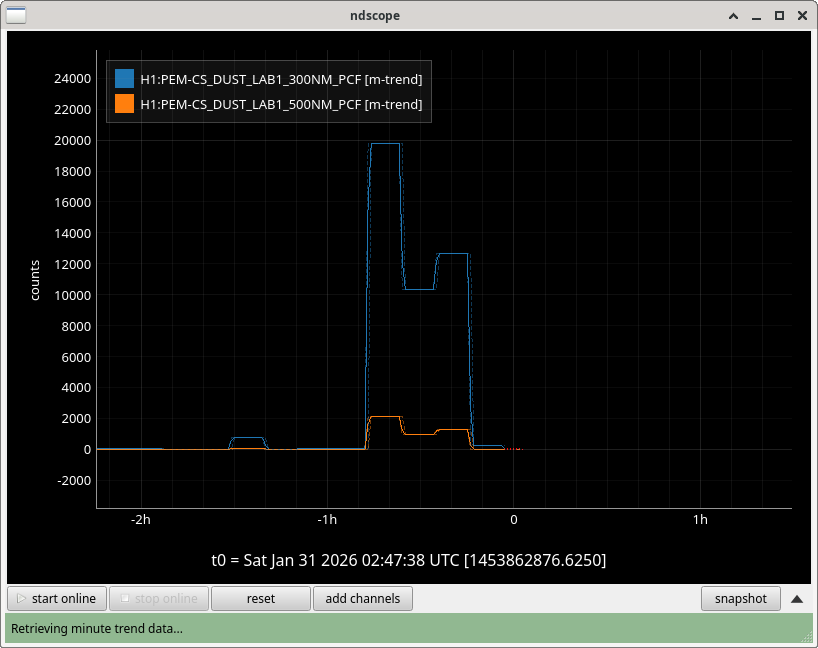 No big changes here, got a few spikes that are likely DAQ restarts.