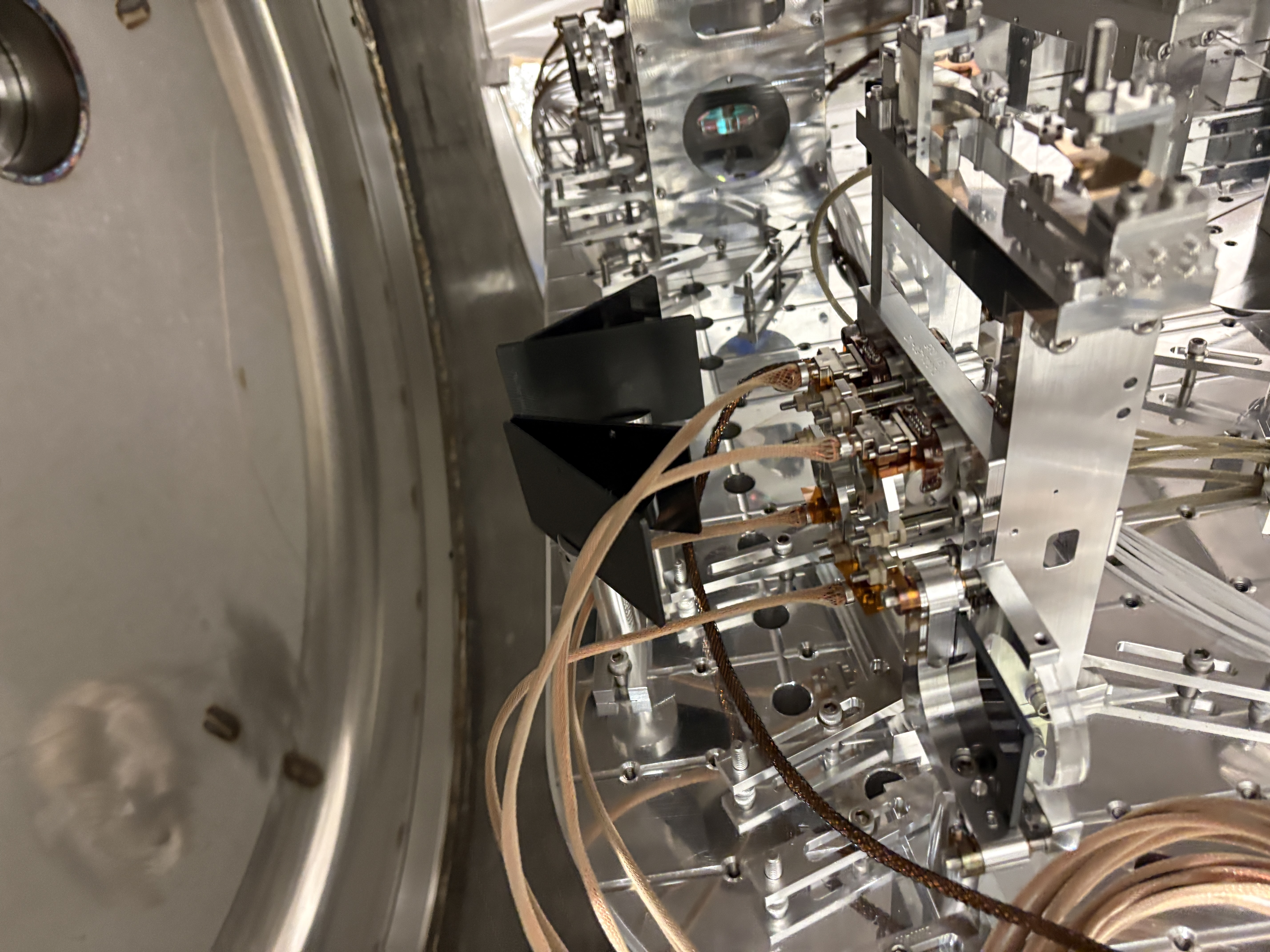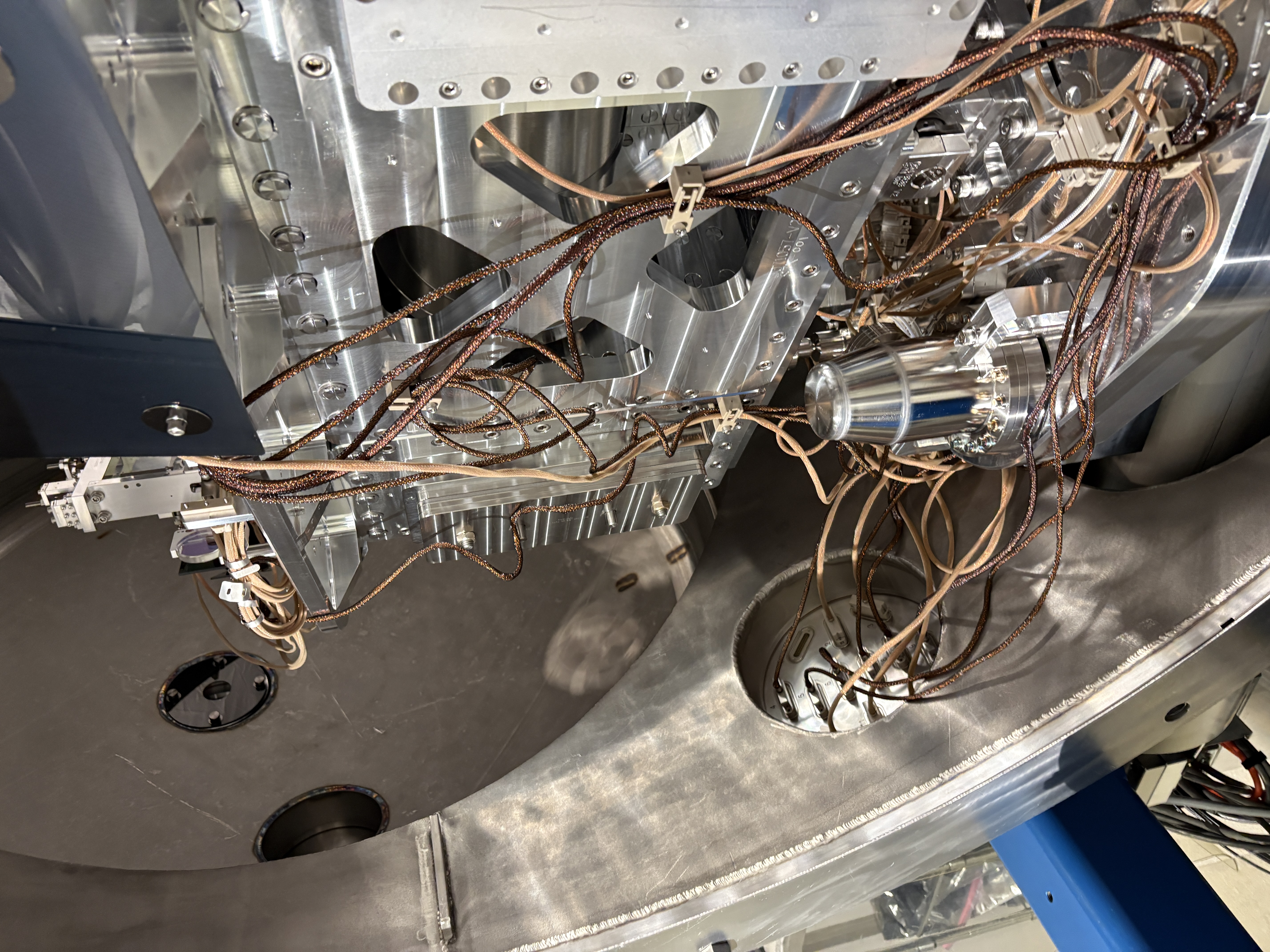 Yesterday, ground loop checks revealed a new and random ground loop issue on the LR BOSEM of the Tip Tilt PM1 suspension (which has been installed and used in vac for a long while now). This morning I worked to swap the BOSEM for a new one, reset the medm offset/gains and recentered. Fil confirmed that the ground loop situation is now resolved on PM1. In Corey's absence, I took a bunch of photos (won't be as good as his but here for posterity) of the chamber components as we see them before closing up. I wiped down some of the under table surface as I could. Jim and I both inspected for left behind items on and under the table. BOSEM SN 263 is the problem OSEM removed, SN 229 was swapped in with OLV 28860. Jim then removed the septum viewport covers (all 4)and unlocked the ISI. Oli ran the final closeout TFs for PM1 (JM1 and JM3 were yesterday). I revisited the closeout check sheet and we launched the door crew (Jordan, Randy, and FAC - thanks for jumping in due to others absences!). 1 door is on now and we are about to check that the JAC Refl beam goes through the viewport on the door as anticipated given the inaccuracy of the viewport simulator fixture.