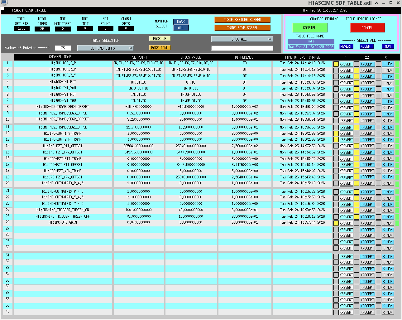 Still need a similar check of SAFE sdfs for JAC locking but this is less urgent as we don't need any model changes in the near future and are still working on optimising the JAC-REFL locking.