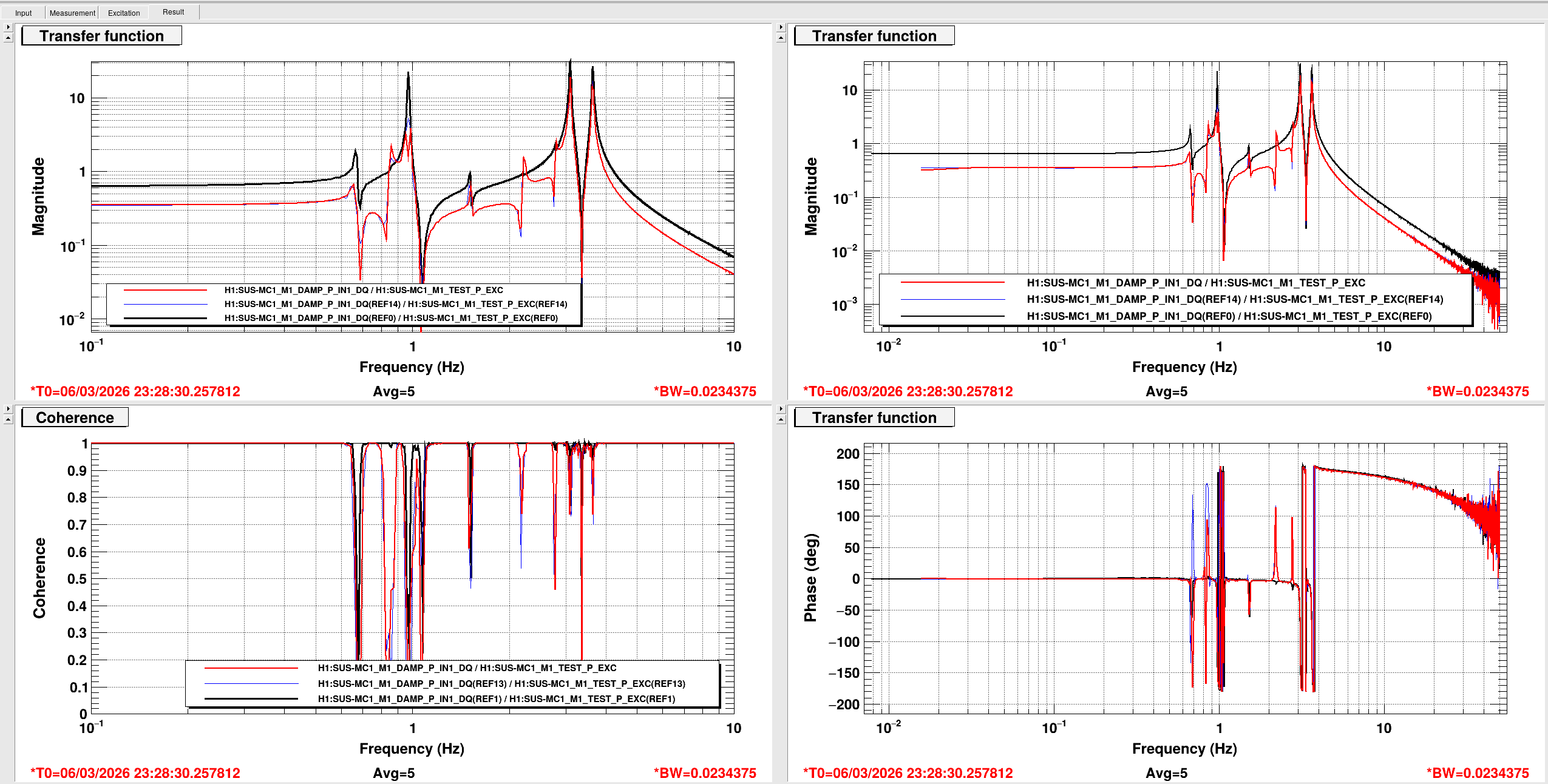 23:31 I remeasured MC1 P and confirmed that the Coil Driver swap was unsuccessful, the TF still looked the same. I also ran an undamped OSEM spectra before and after the swap.