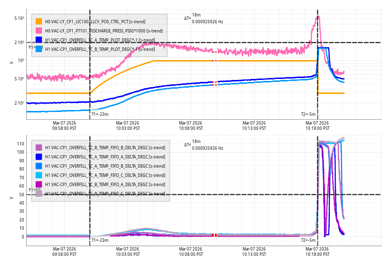 Pumpdown was started without an issue. We started with the scroll pump from the super sucker 500, the scroll pump of the SS500 cart brought the pressure down to 3.7x10-01 Torr, then we switched the cart to start pumping with the turbo pump/scroll pump. We had one trip of the system, usually due to a time out, but it only took a restart of the turbo pump and the pumpdown to continue.