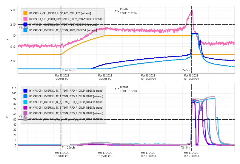 A side effect of running this test can be appreciated on the attached trend data, because we powered off the ion pump the vacuum pressure internal to the main volume went up, it can be appreciated by the gauges along the Y-End station as well as Y2-8 gauge.
