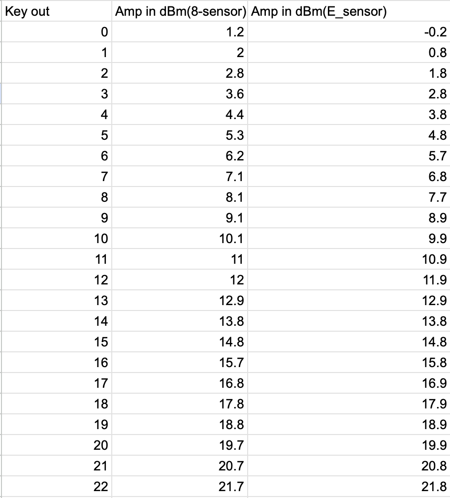 Then using the fact above, I found that the whole AMP 1 chain has a gain of 33.7 dBm from what the keysight displays. And AMP 2 chain has a total gain of 32.3dBm from what the keysight displays. Using this fact I could find the voltage associated with each of the monitor channels of SPI prep.