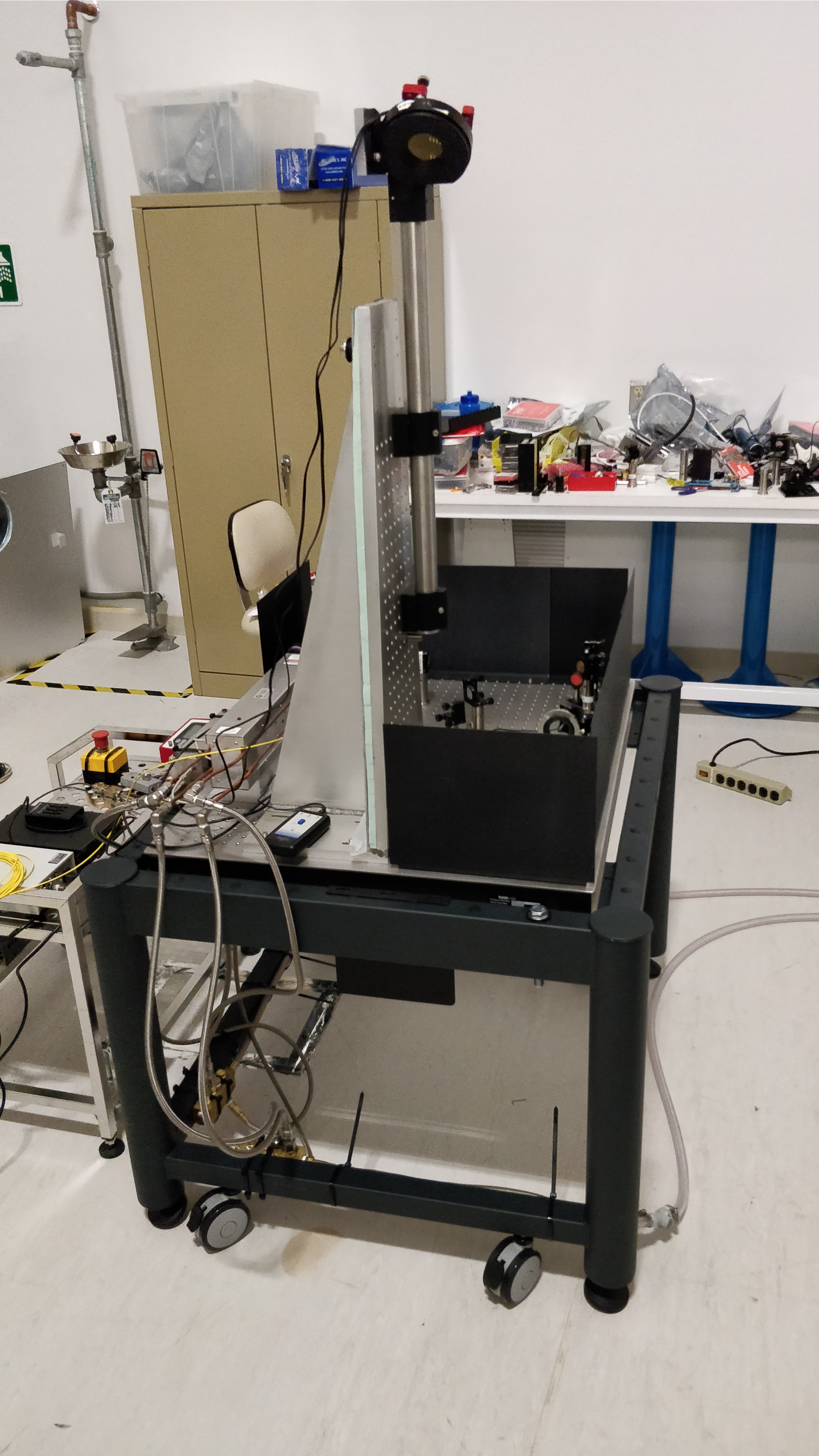 Finer adjustment on to the second and we were able to hit the input baffle hole. This should be easier with the actual setup as the tripod wasn't easy to adjust and the red laser on the table is ~3mW rather than ~1mW from the pointer.
