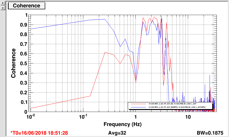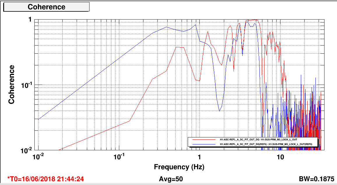 -- First figure: M1L -> M3P decoupling. The blue trace is before engaging the L2P feeding-forward and the red one is after. The L2P coupling is greatly reduced <0.1 Hz.