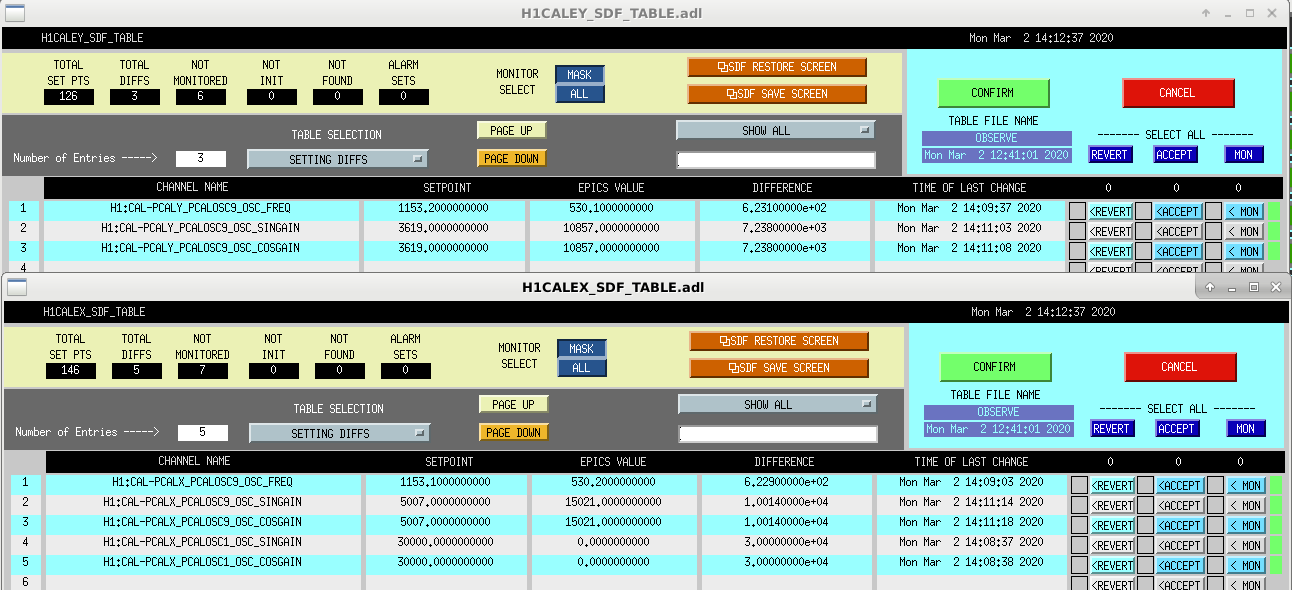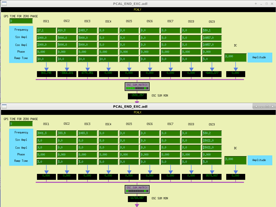 Attached is a screenshot of the PCAL oscillator MEDM screens during this test.