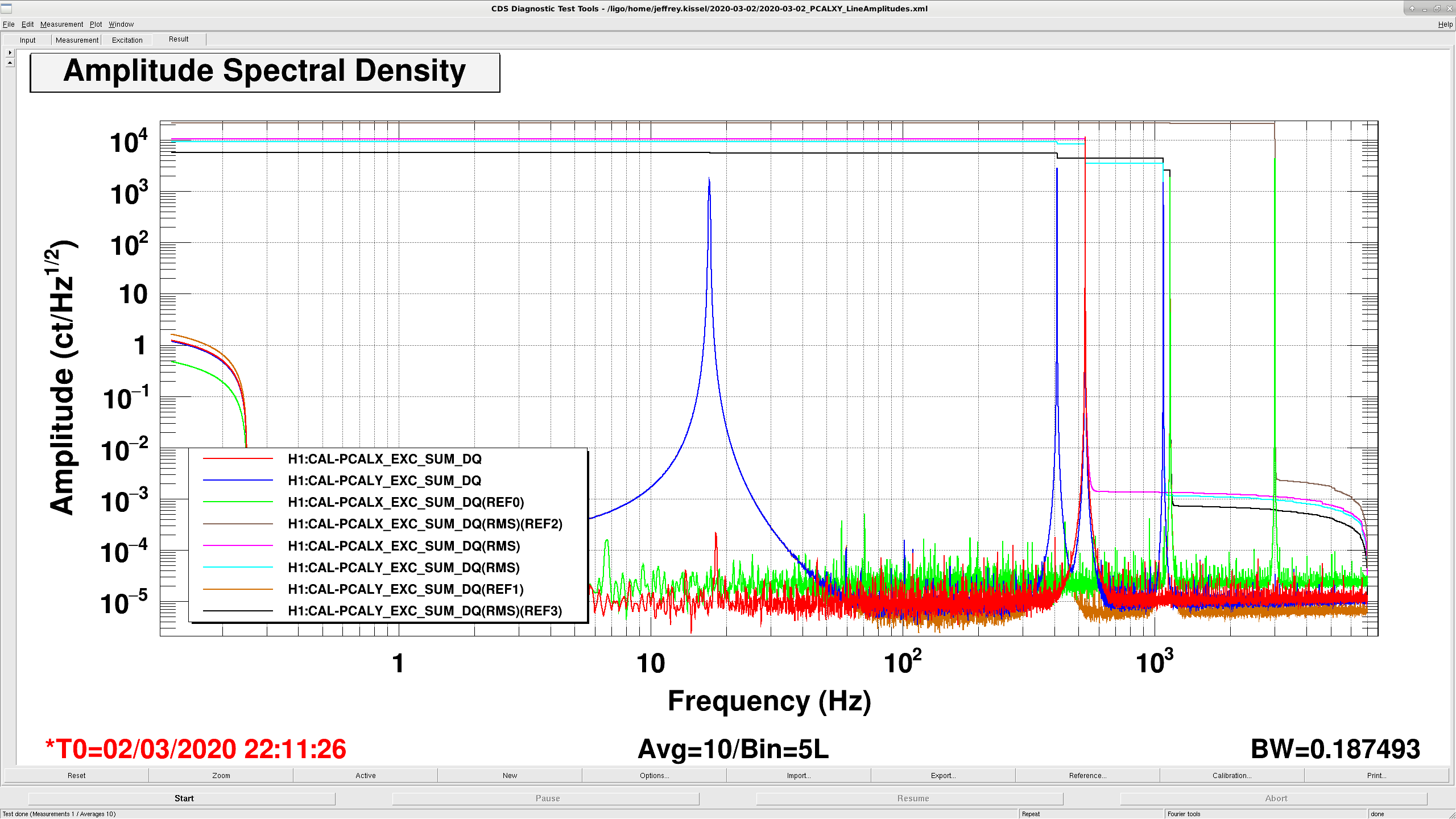 Thus, today, we try again, with the PCAL lines back down at 530 Hz, but with an increase in amplitude by a factor of 3 (and a flip-flip of frequency assignment).
