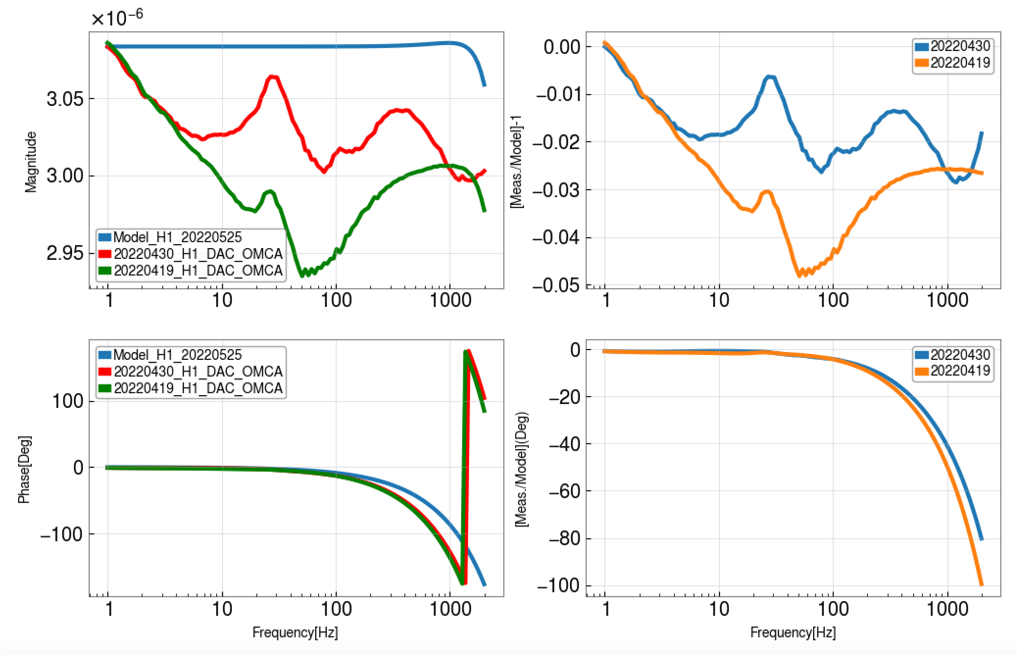 Model transfer function of DAC-driven measurement based on Part IV of of G2200551 w/ new pyDARM. Verifying the gain of this transfer function in 1 kHz according to estimation of LHO:62653 with example configuration file in pyDARM repo. On the other hand, process the DAC-driven measurement with new pyDARM Infrastructure. The process result is same as LHO:62916.