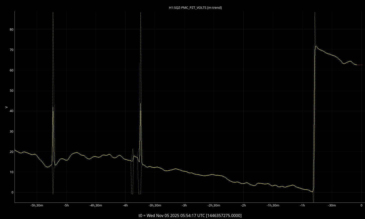 Had a LOW SQZ_PMC voltage, but squeezer lockloss and automatic relock brought the voltage back to a better state (70+ volts).