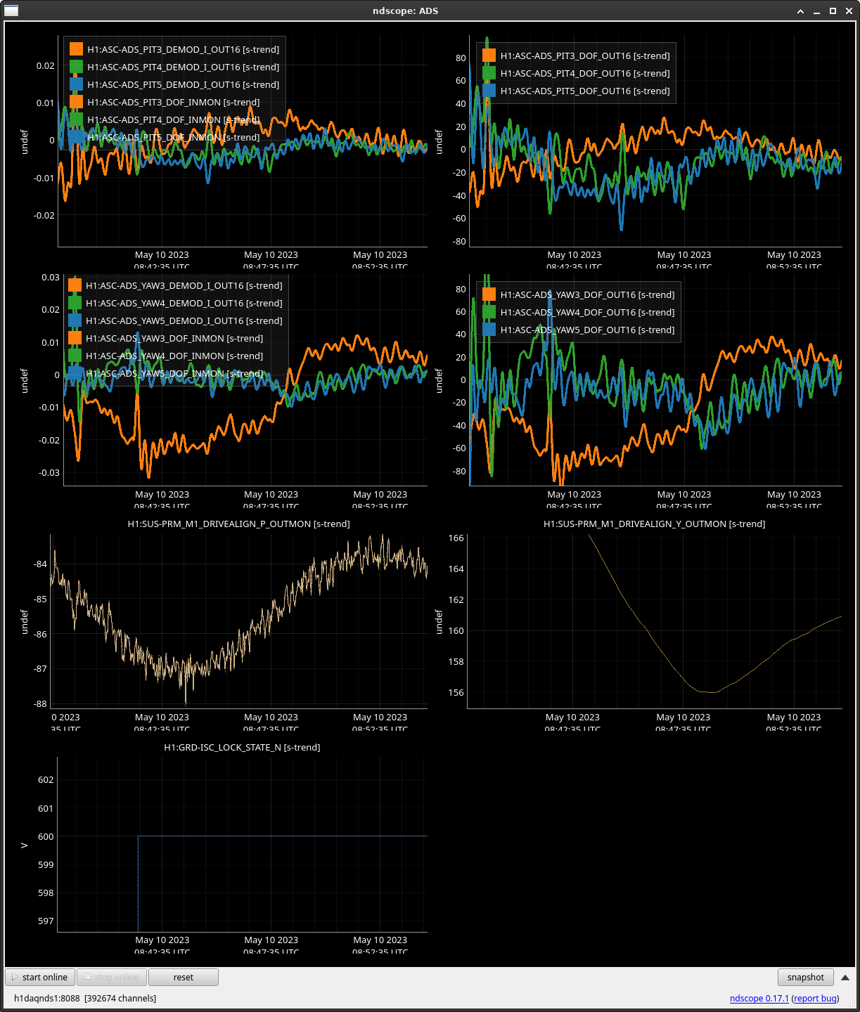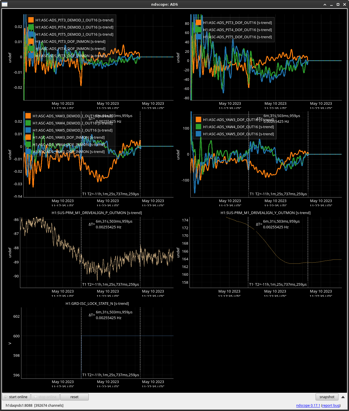 We then looked directly in the PRM suspension and tried to find any clues, and it turns out we found something interesting. We found that the PRM DRIVE ALIGN M1/M3 stages behave in the exact same fashion as the ADS drift (ss 1 / 2). Is this expected? Might be, since we know that ADS YAW 3 feeds directly into PRM. But we thought it was worth noting here.