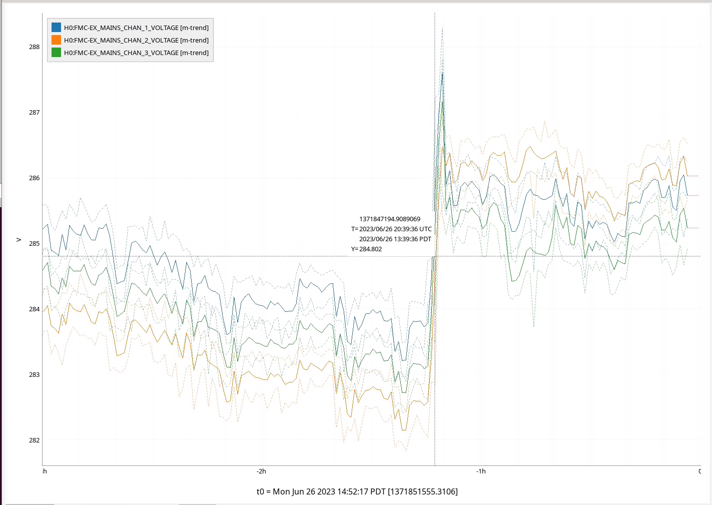 Attached mainsmon channels for EX show a glitch at 13:39 PDT