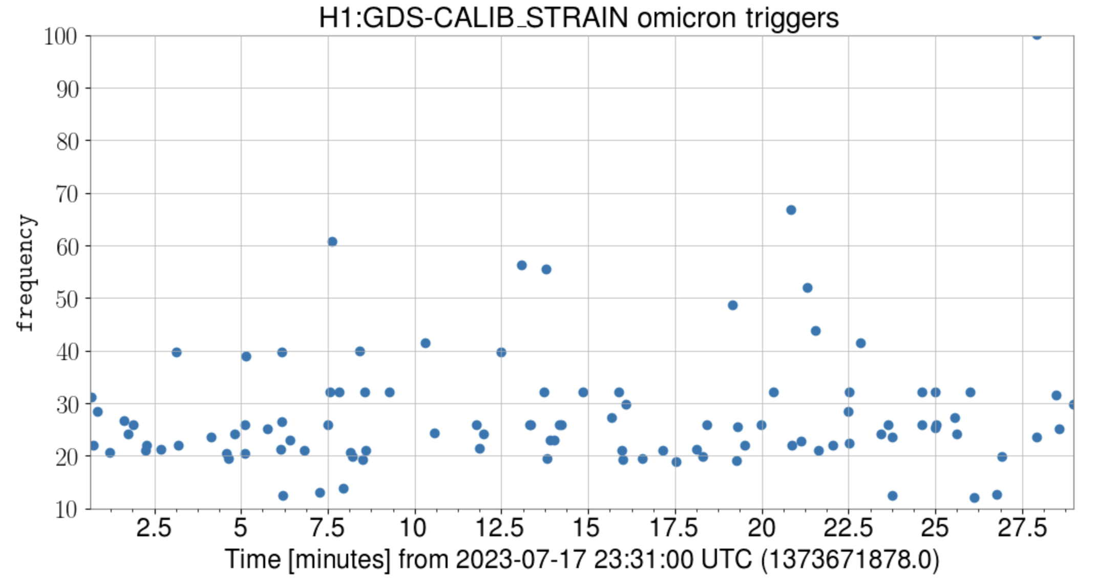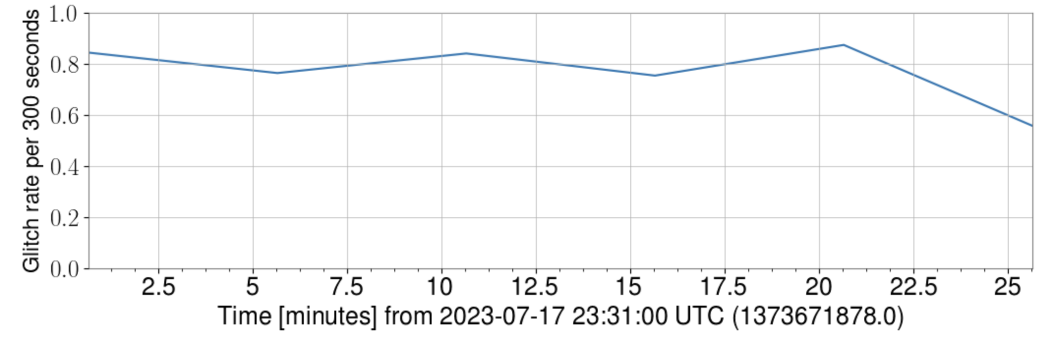 I attach here the omicron transients during this test from  2023-07-17 23:31:39 to  2023-7-18  00:03:01.  The first figure is the time-frequency plot and second figure shows the rate of these transients per 300 seconds.