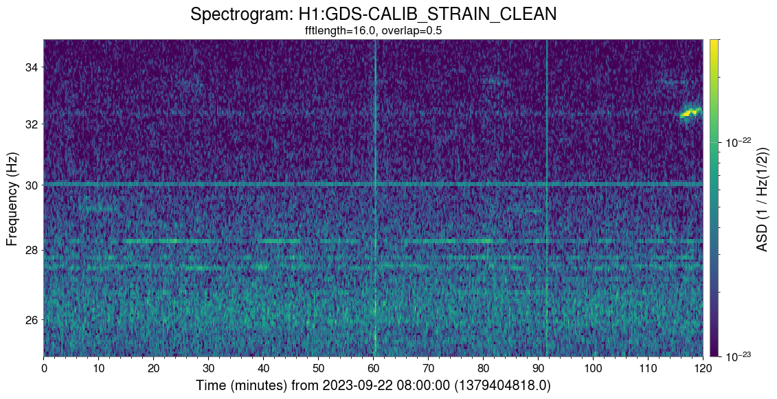 The feature in the SEI/BLRMS channel has appeared from time to time although not with the frequency and regularity seen now. It seems to have started around 23:00 UTC on Sep 21, but persisted through Sep 22 and 23. It's still present today (Sep 24), though its cadence has seemingly changed (figure 7).