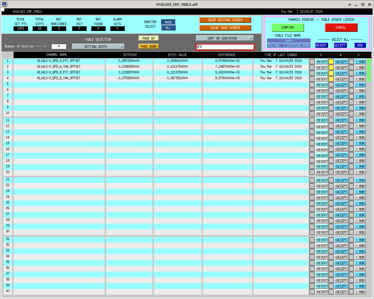 All SDFs are saved, and the five attached screenshots show the ALS Y QPD offsets, ALS Y cam offsets, ALS X QPD offsets, ALS X cam offsets, and POP A offsets.