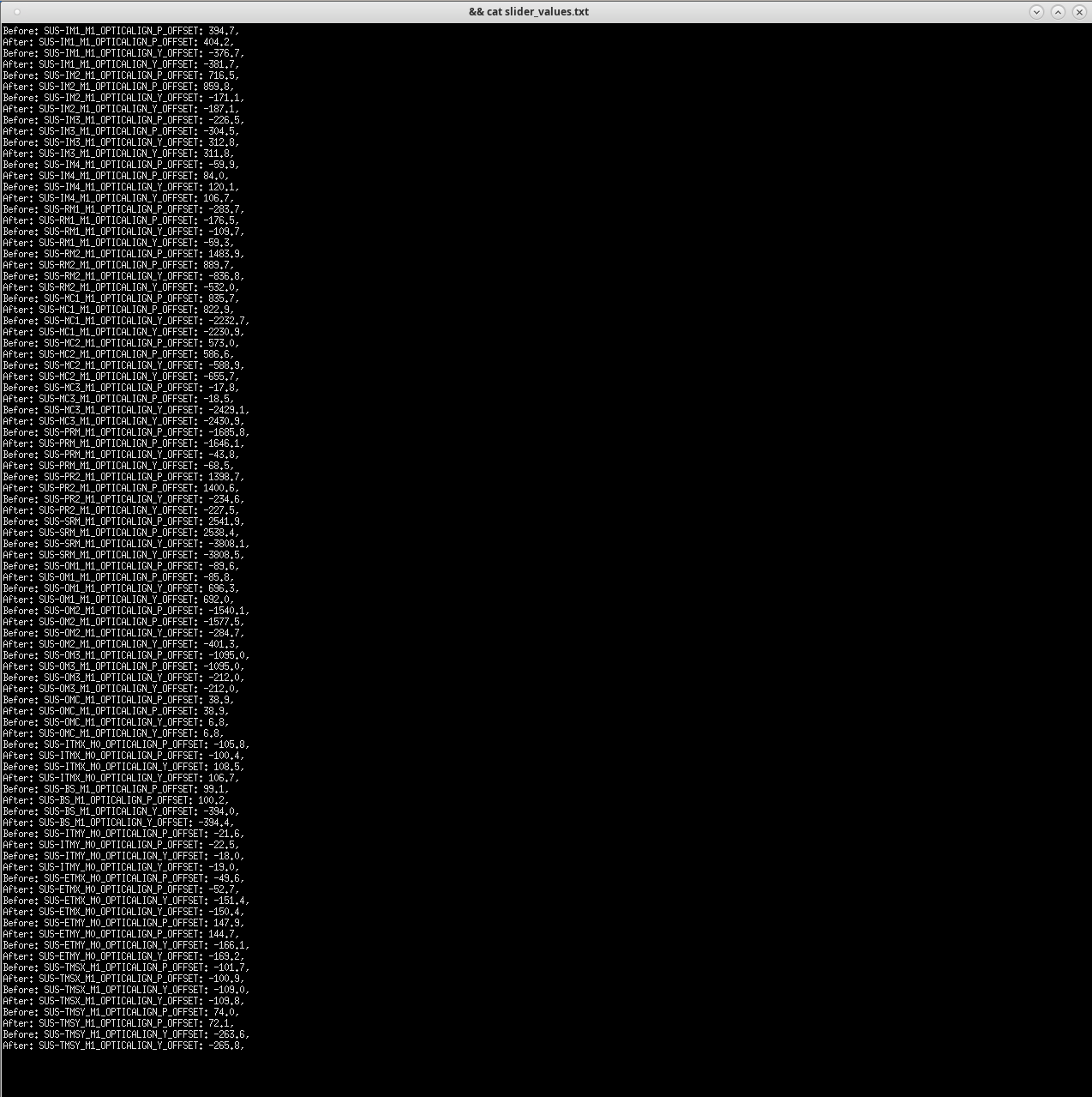 I restored all the sliders using my restore script on IFO_ALIGN_COMPACTEST to before the glitch, 19:00 UTC.