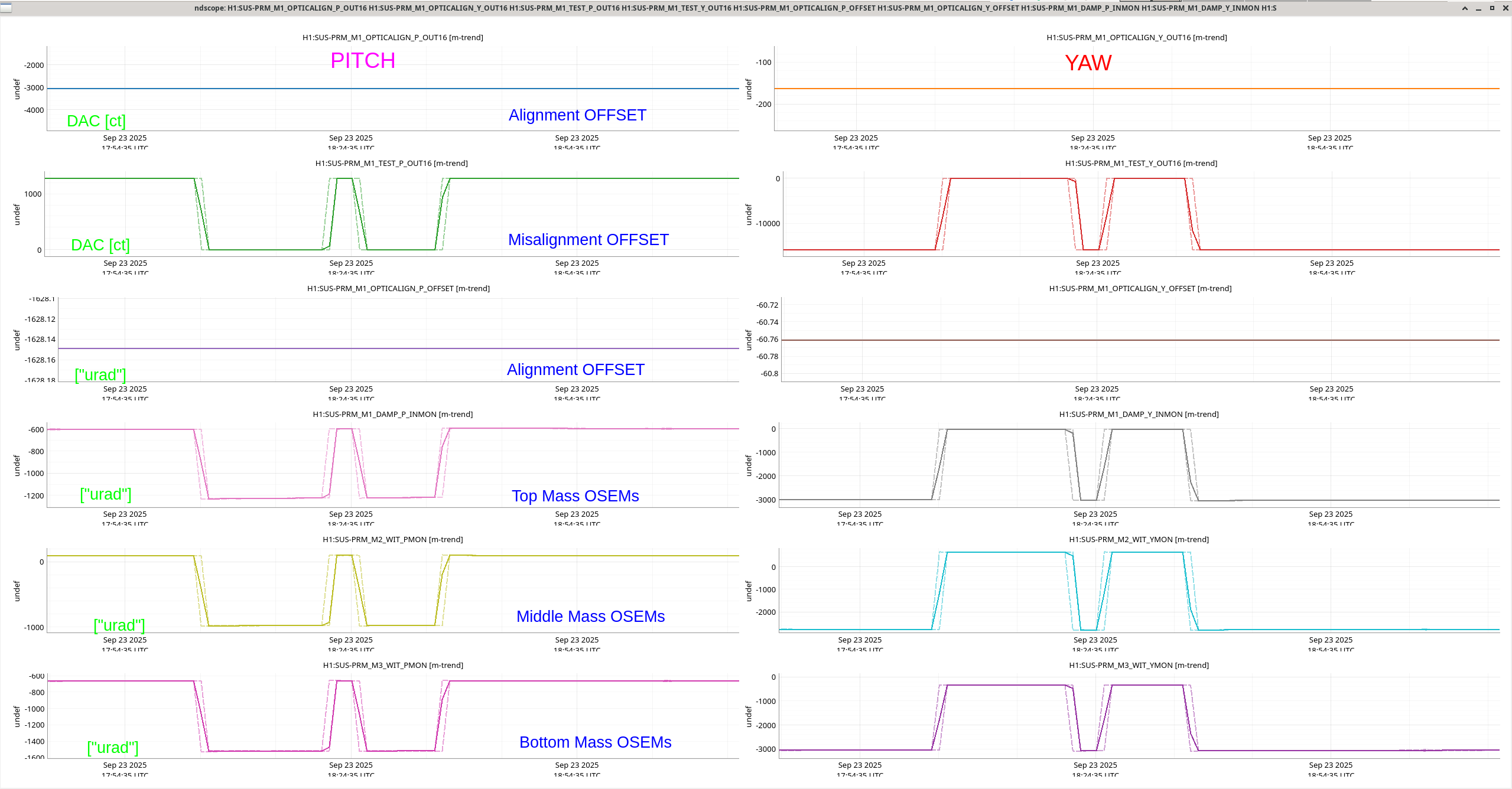 Comforting at least, is that the misalignment offsets are driving the suspensions by *hundreds,* if not a few *thousands* of "urad" from their aligned position.