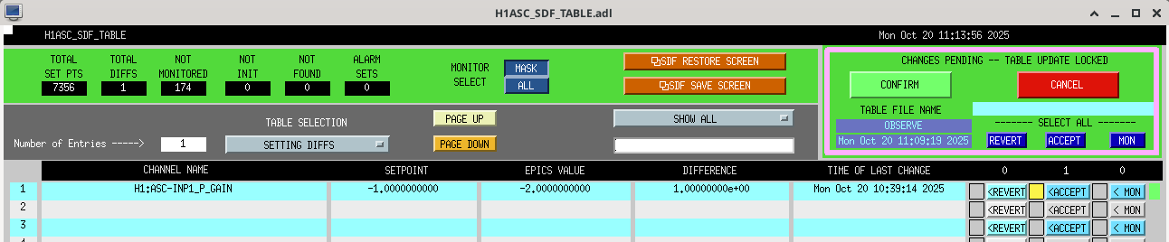 INP P gain accepted in SDF. CSOFT doesn't look to be monitored.