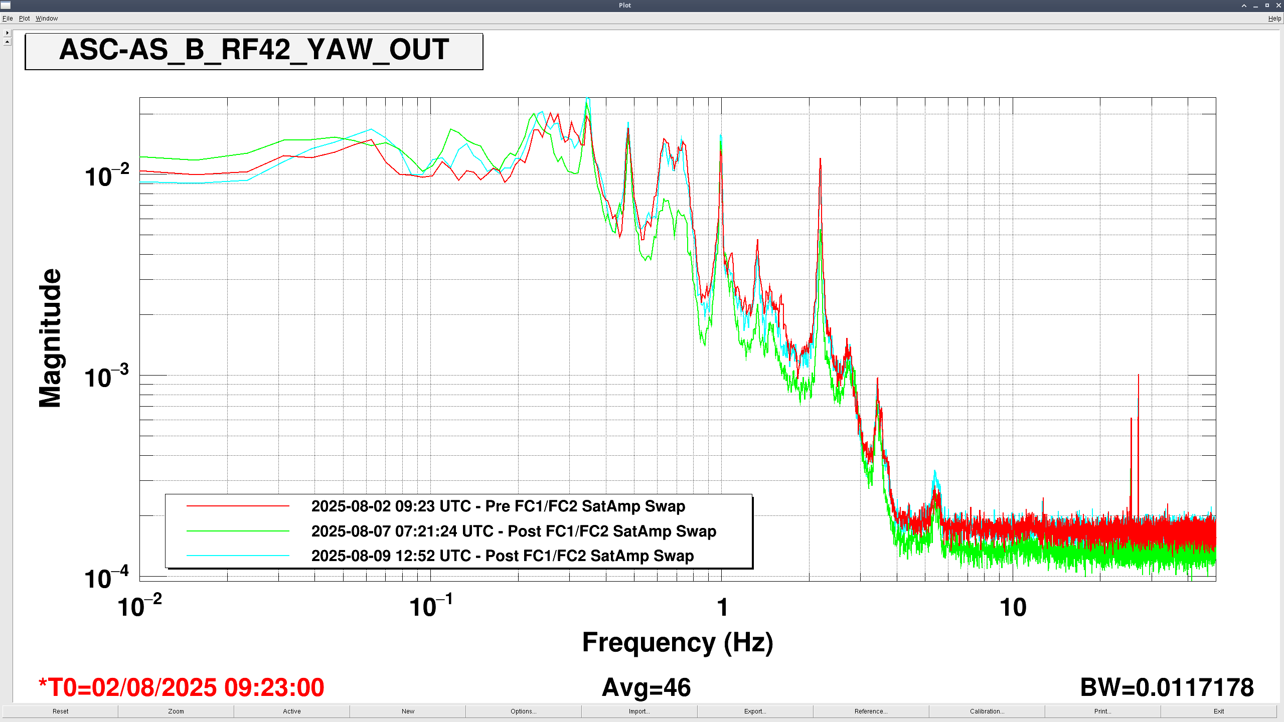 This is basically a continuation of 86624. Sheila gave Jeff a few more channels to look at regarding the SQZ ASC comparison before and after the satamp swap. The channels I looked at were H1:ASC-AS_{A,B}_RF42_{PIT,YAW}_OUT_DQ.