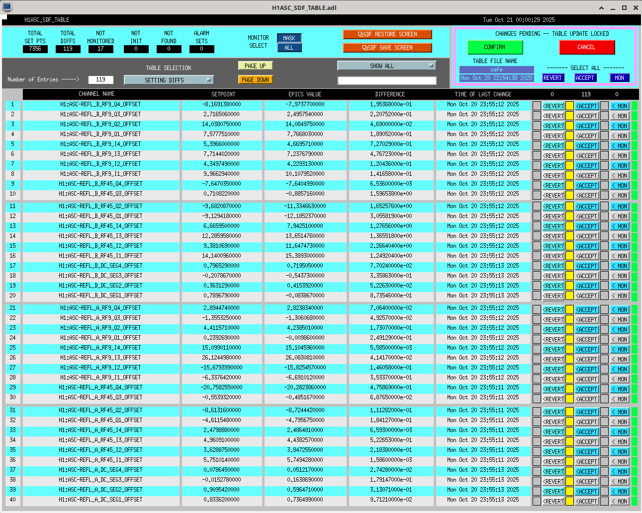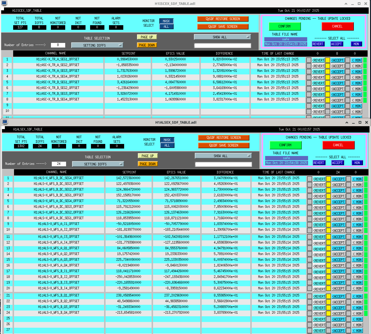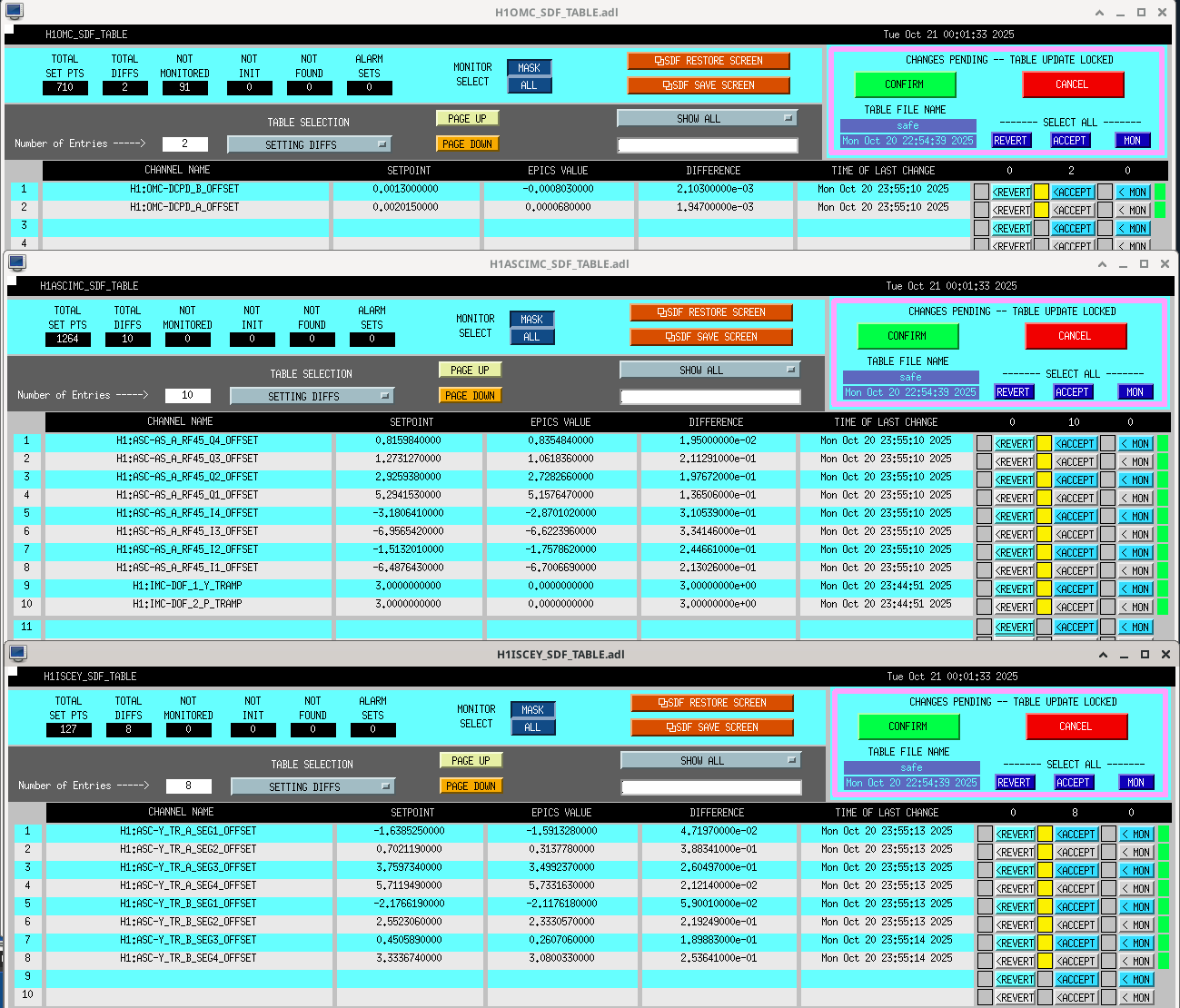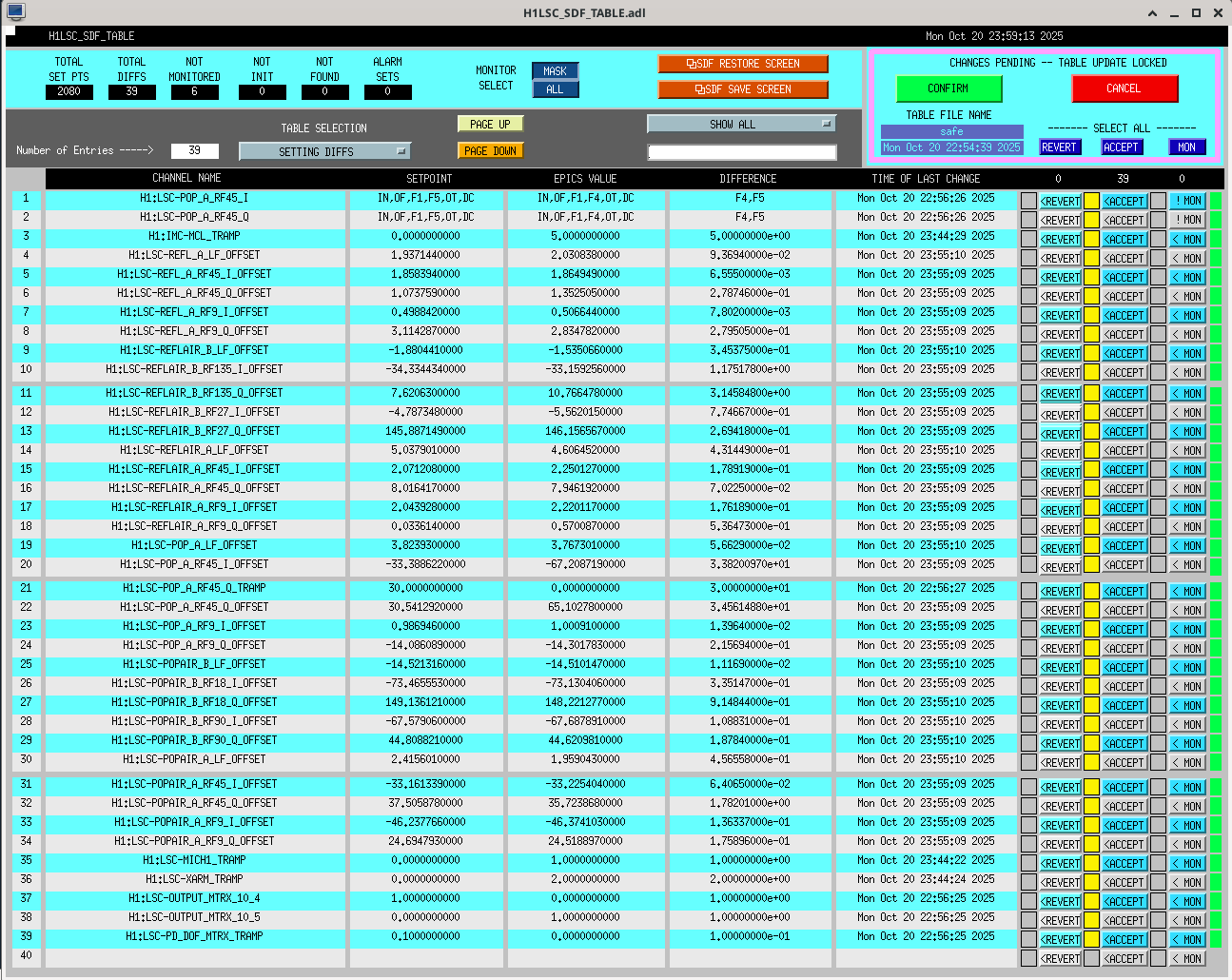 Ryan and I initially thought it was an odd alignment and chased that with the usual checking of suspension alignments, checking temperatures, etc. We just couldn't get any flashes to show up on LSC-TR_X_NORM_INMON. On the front FOM, POP90 was visible and noisy, both things that shouldn't be at this point of initial alignment. We eventually thought that maybe it was a dark offset issue since the TR_X channel wasn't quiet at 0, so we ran the dark offset script. This didn't help but I've attached the SDF screenshots. While looking at this channel more, Ryan noticed that it would dip below 0 frequently, almost as if it was flashing but into the negative values. Sign flip somehow? We tried to understand this for awhile and eventually gave up to call the top person on the call list, Keita.