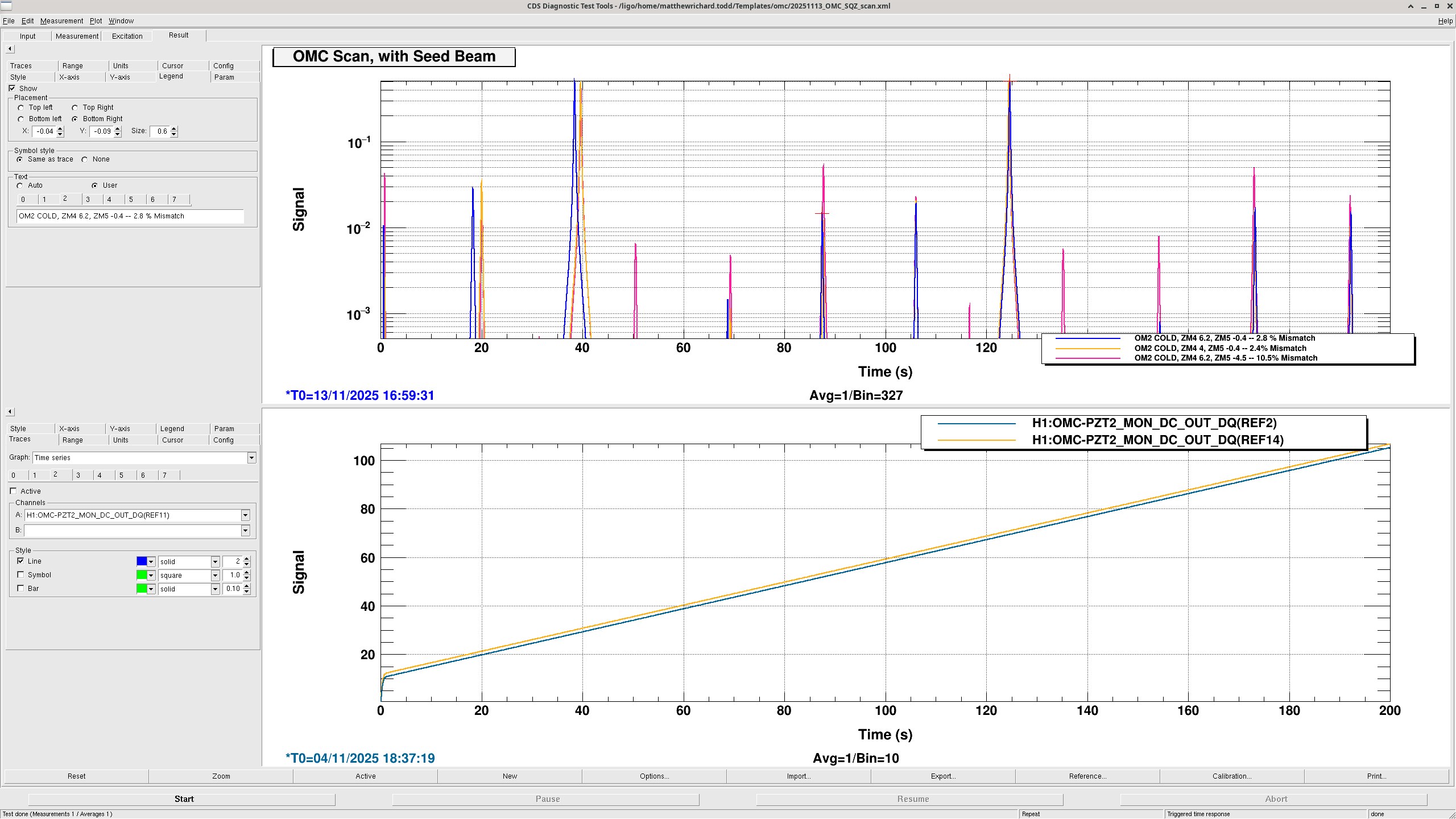 We wanted to get a couple of measurements of the OMC mismatch with the SQZ beam when we changed from the nominal setting for only one of the ZMs at a time. OM2 was cold for all of these measurements.