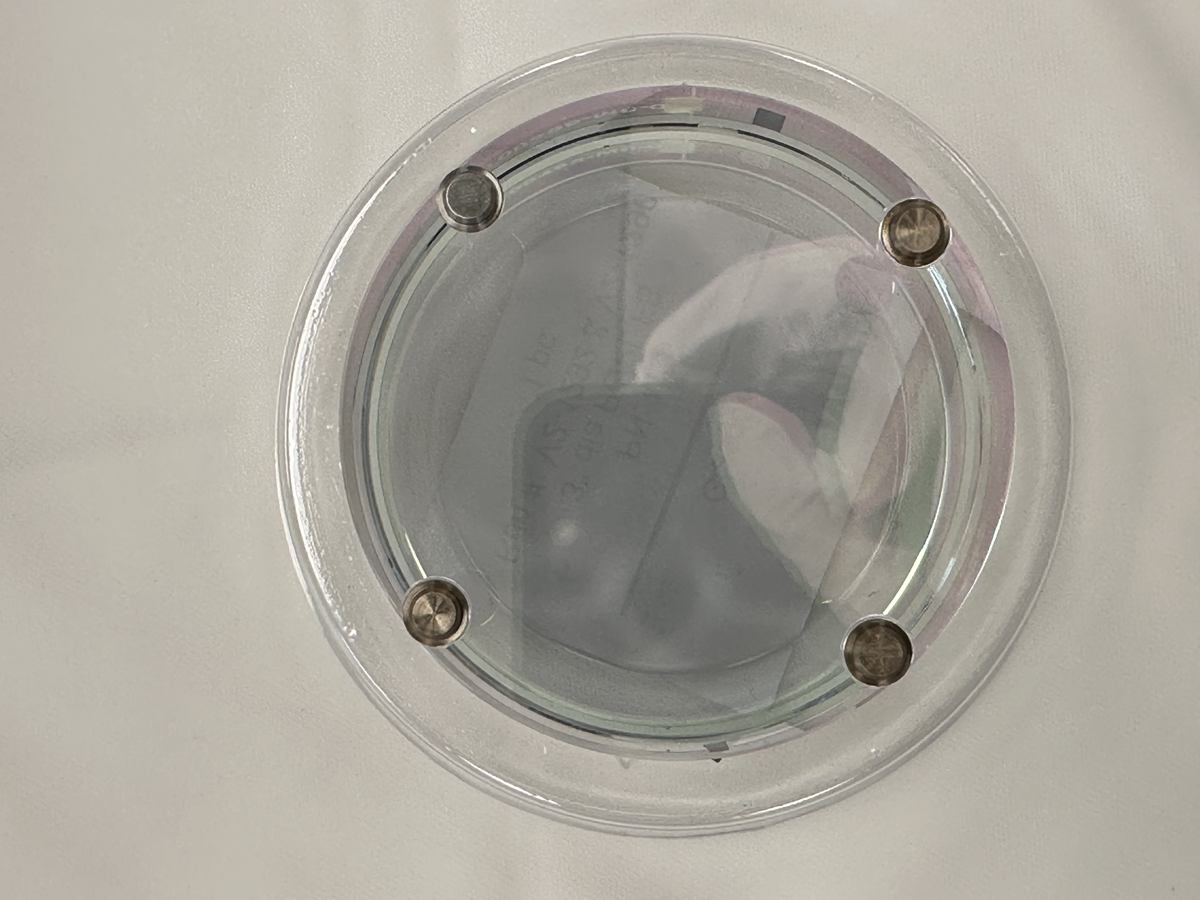 I took the picture of the bottom periscope mirror through dichroic (HR for IR, transmission for green) to see the beam clearance. In the first such photo (POP_beam_clearance.jpg), the camera is close to the center of the dichroic and the short stiffener beam is close to the edge of the optic but not occulting the mirror, so we're OK. Just to make sure that we're absolutely safe, I moved the camera closer to the -Y edge (right on the picture) of the dichroic (POP_beam_clearance_extreme.jpg) and it still looks OK.