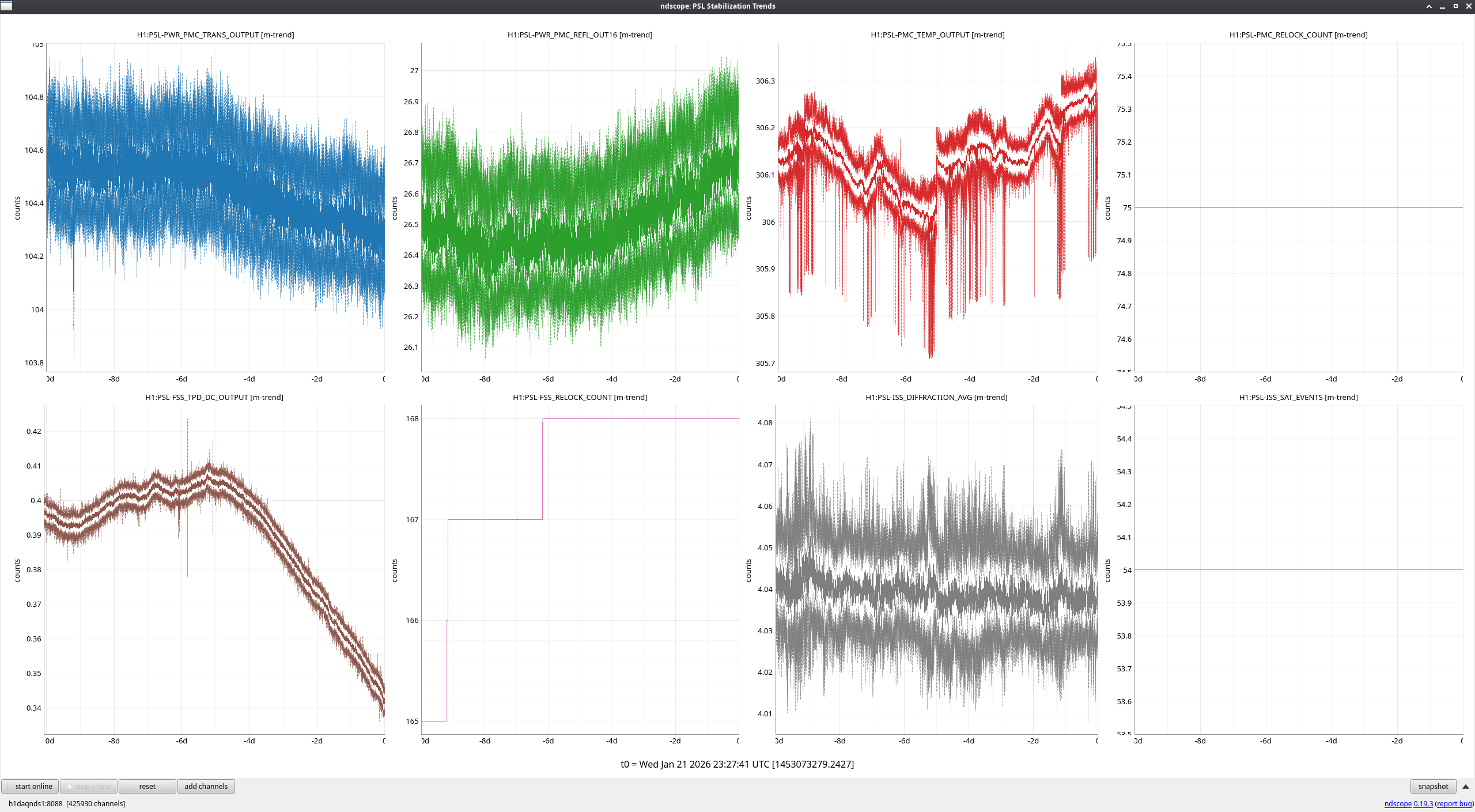 Things are looking very stable over the past week; makes sense since very little has been asked of the PSL recently. The PMC and RefCav could still use an alignment touch-up, which I'll get to hopefully this week.
