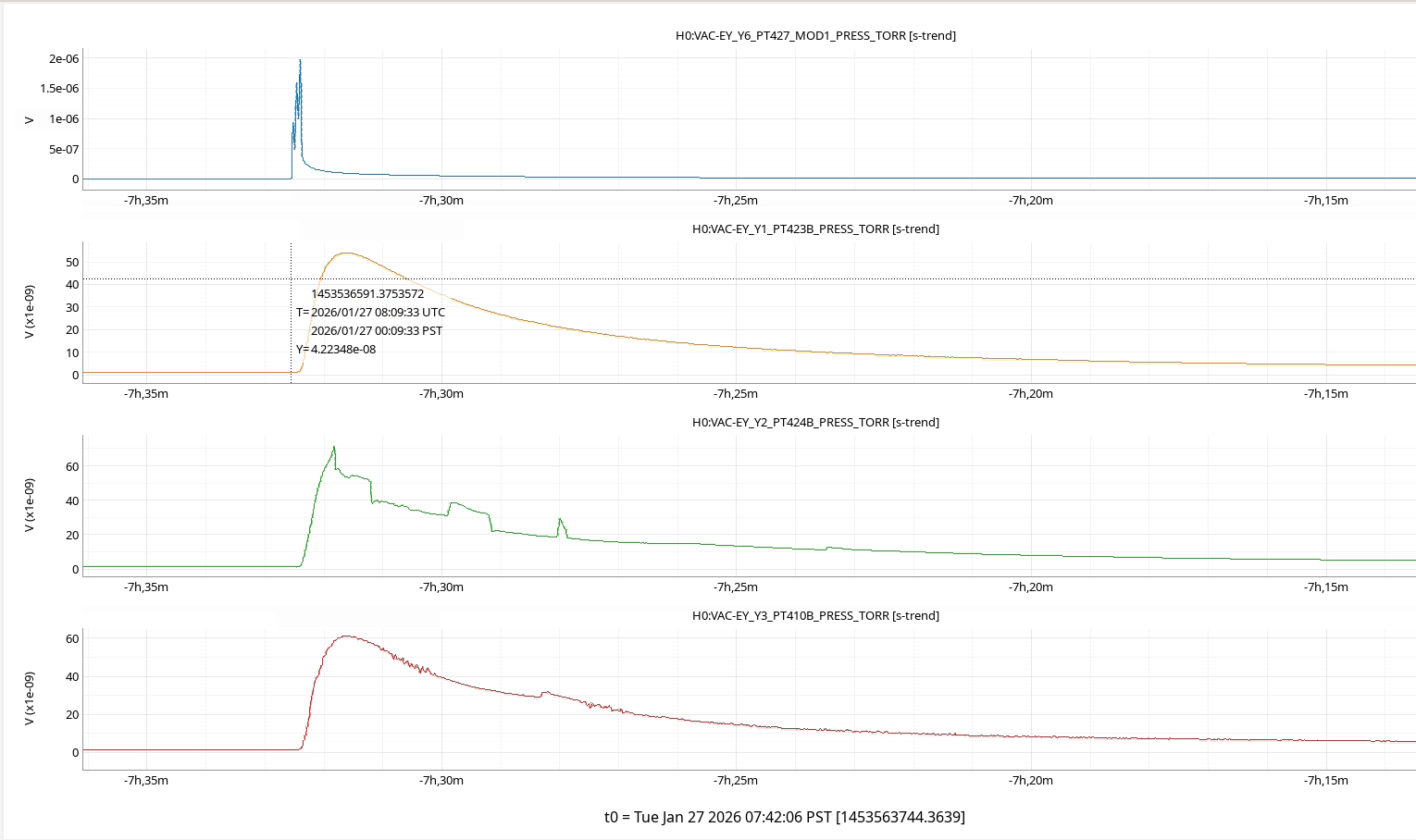 - HAM7 Annulus system update, the ion pump made some good progress. The ion pump has settled down to 3 milliamps, good pressure reading, this allowed us to remove the aux-cart, can turbo and hoses from this ion pump.