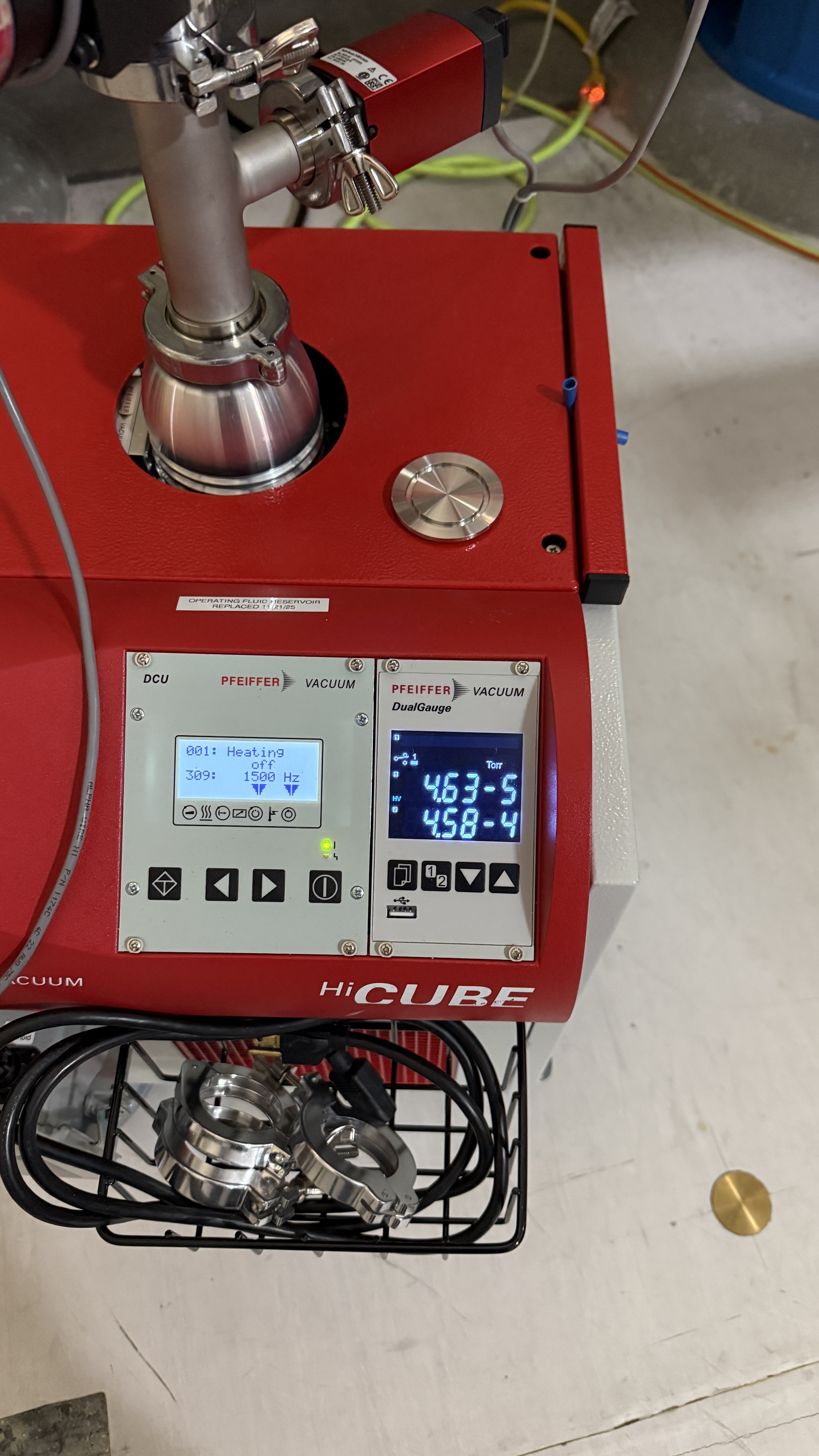 - HAM7 RGA system, yesterday we connected an aux-cart+can turbo combo to this system, we are pumping it down to get it ready for use, but first we need to leak test the conflats that removed from the +Y door.