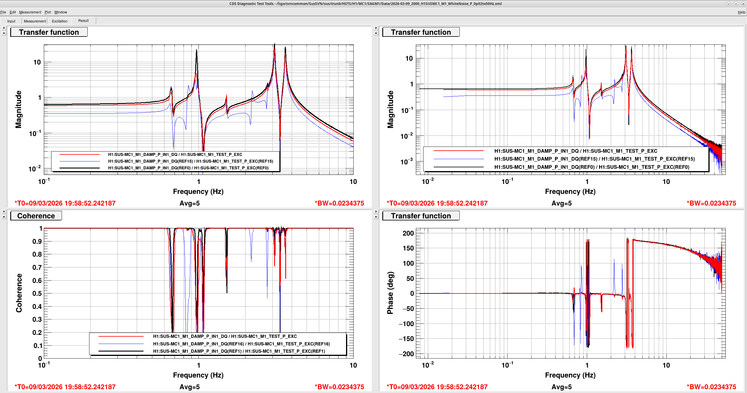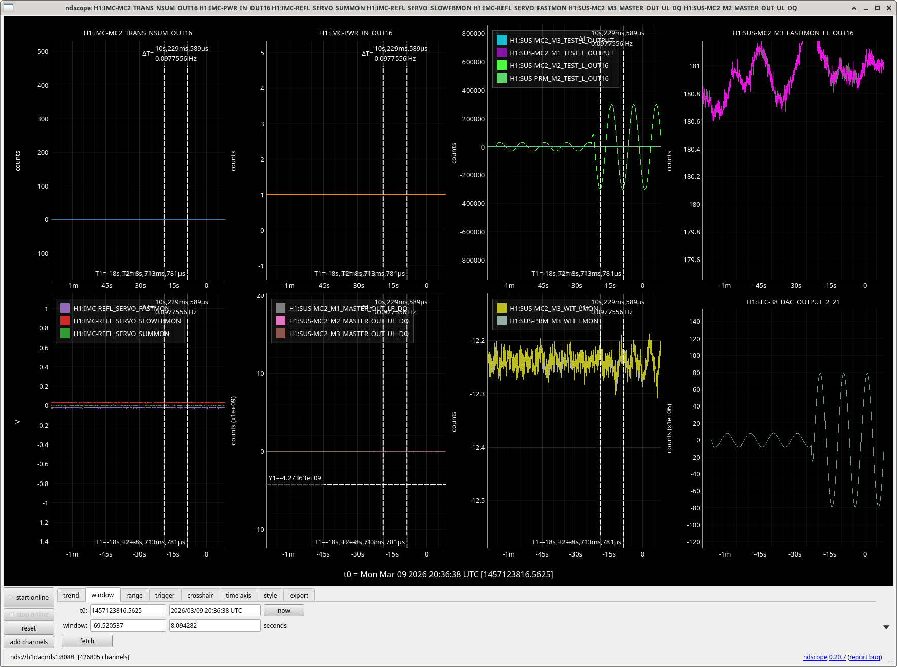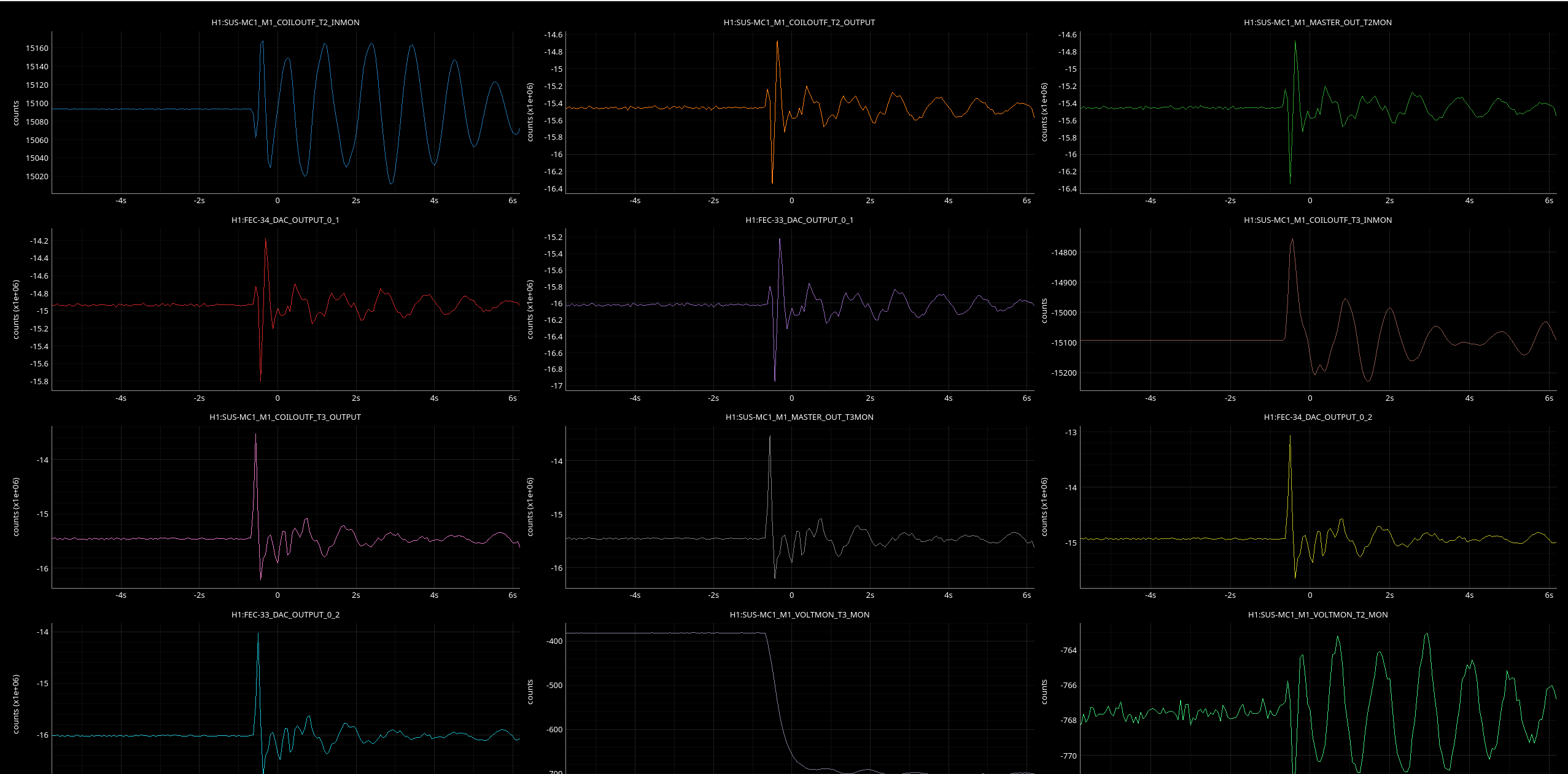 The second pic shows today with y cursors at the reference values. The biggest difference is IM2 pitch which is ~120 counts lowewr than it was, the other 2 DOFs are tens of counts off.
