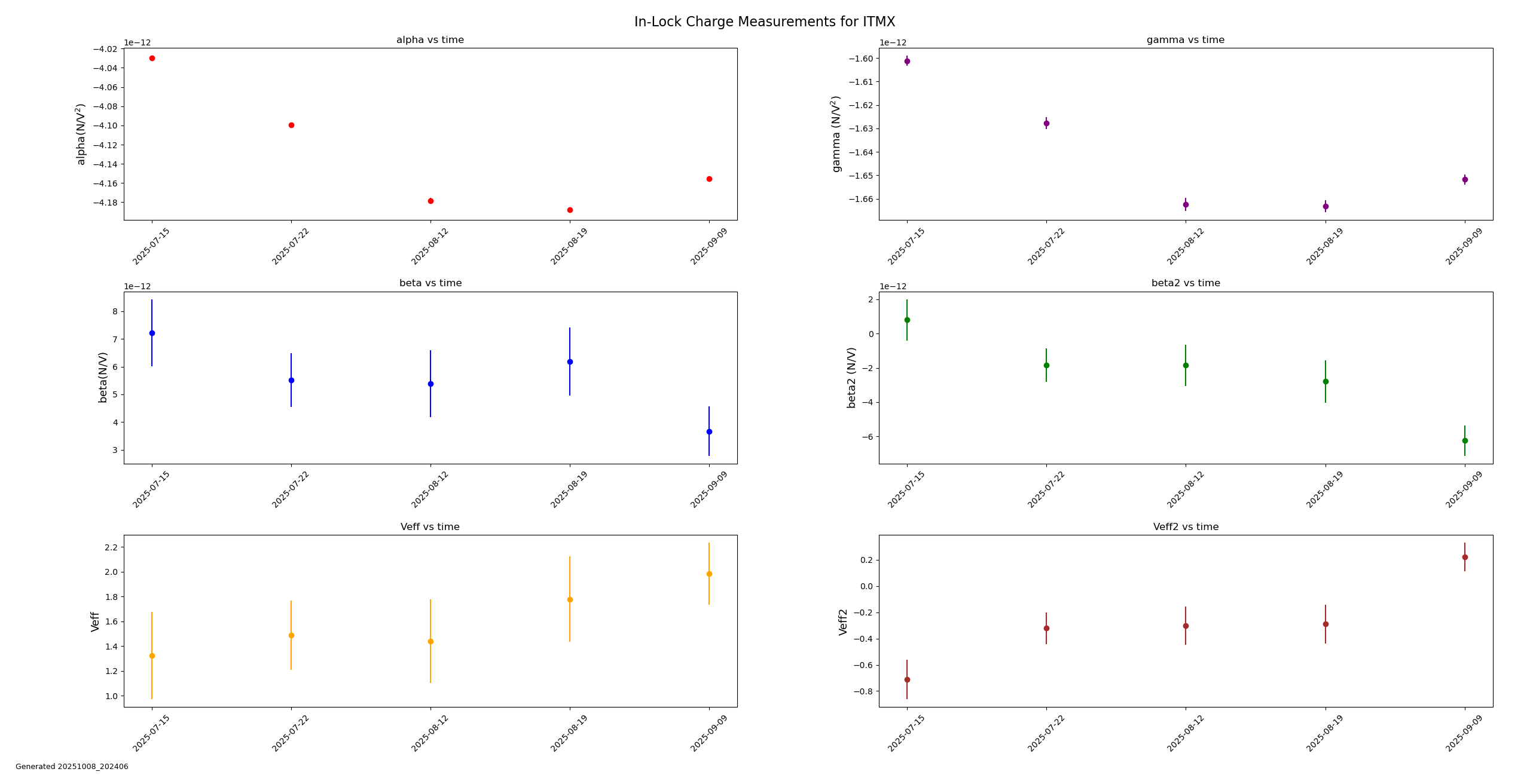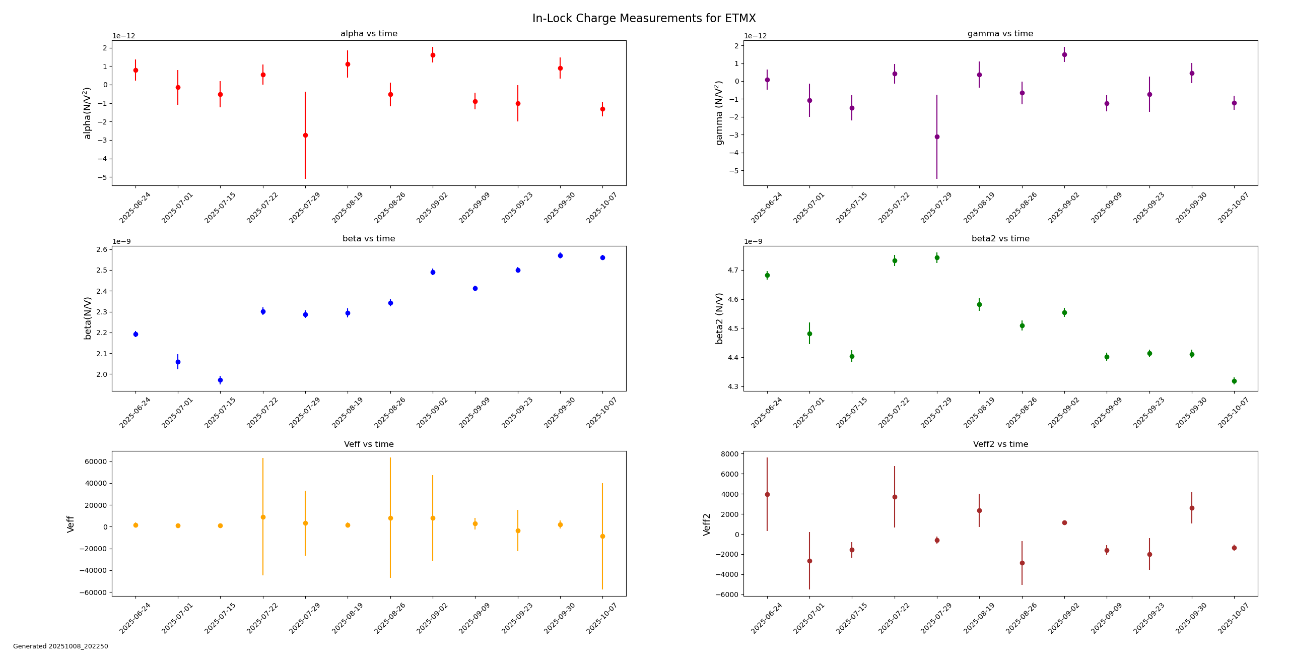 ETMX's Veff error bars are pretty big, as expected. The values looks fairly stable over time.