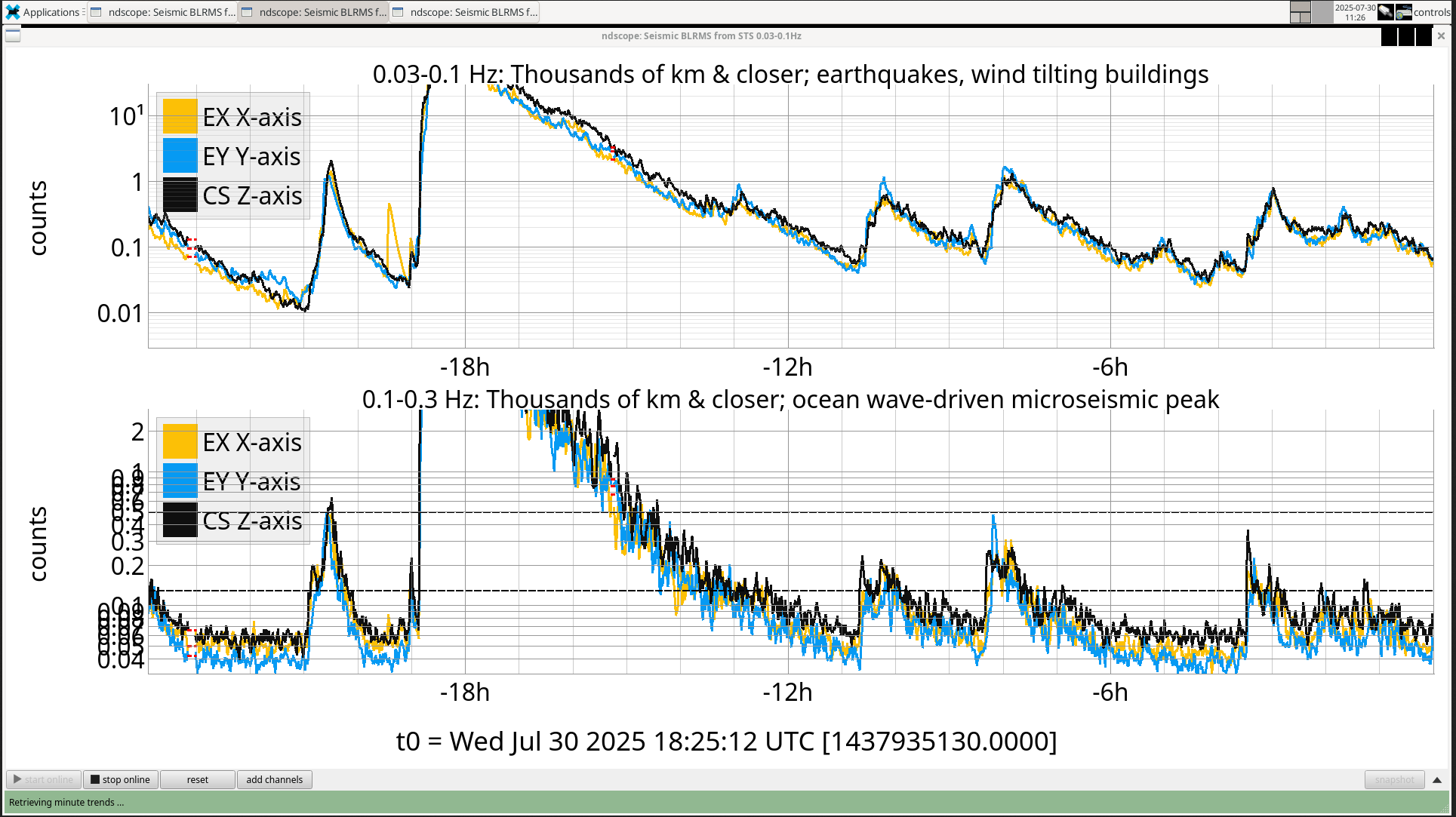 Had a decent attempt at DRMI and PRMI before this latest one rolled thorugh, but it just wouldn't catch. After another initial alignment, where I had to touch SRM again to get SRY to lock, we're ready to another lock attempt. The ground is still moving a bit though, so I'll try to be patient.