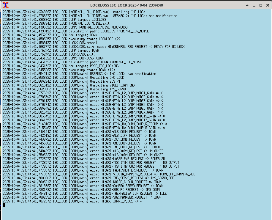17:34 | ISC | Keita | Opt Lab | Local | ISS array work | 19:26 |