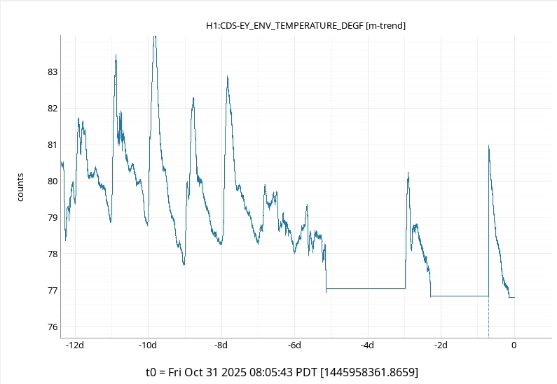 Following up on the end station VEA temperature excursions yesterday morning, Eric noticed that the fan accelerometer channels looked strange just prior to that time.