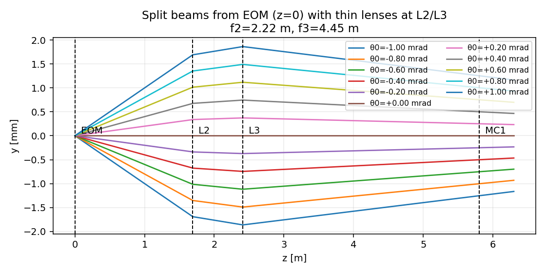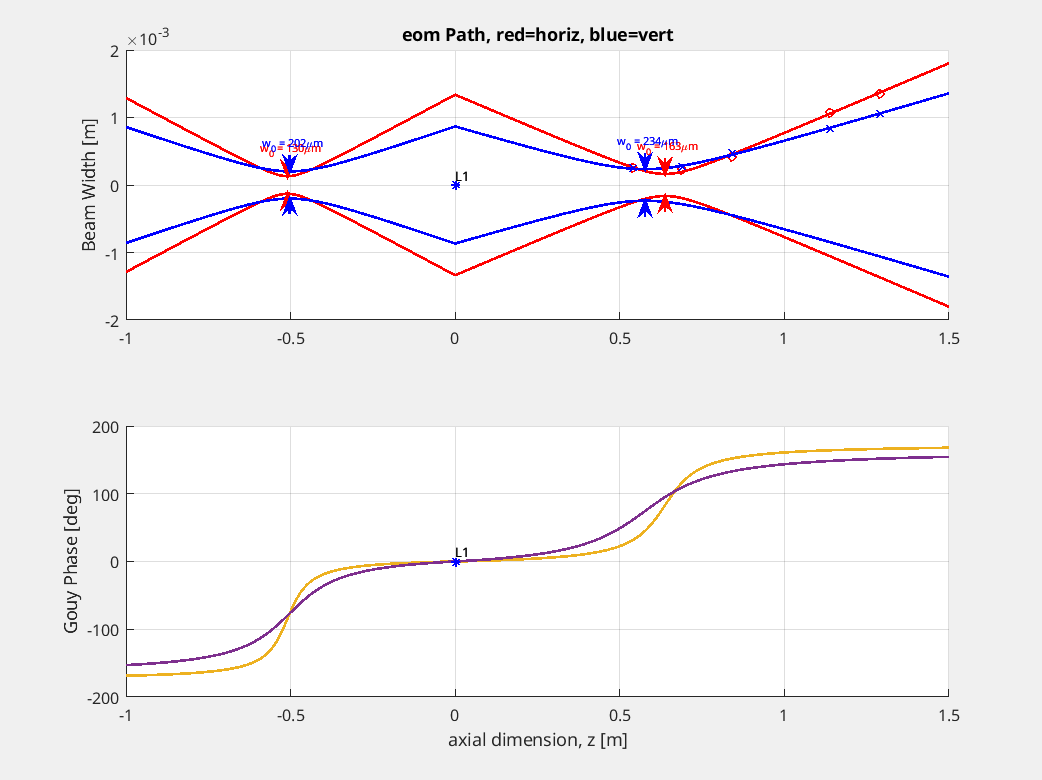 One question Jason had was whether or not the diverging beams that originate from the EOM location are supposed to keep diverging after lenses.
