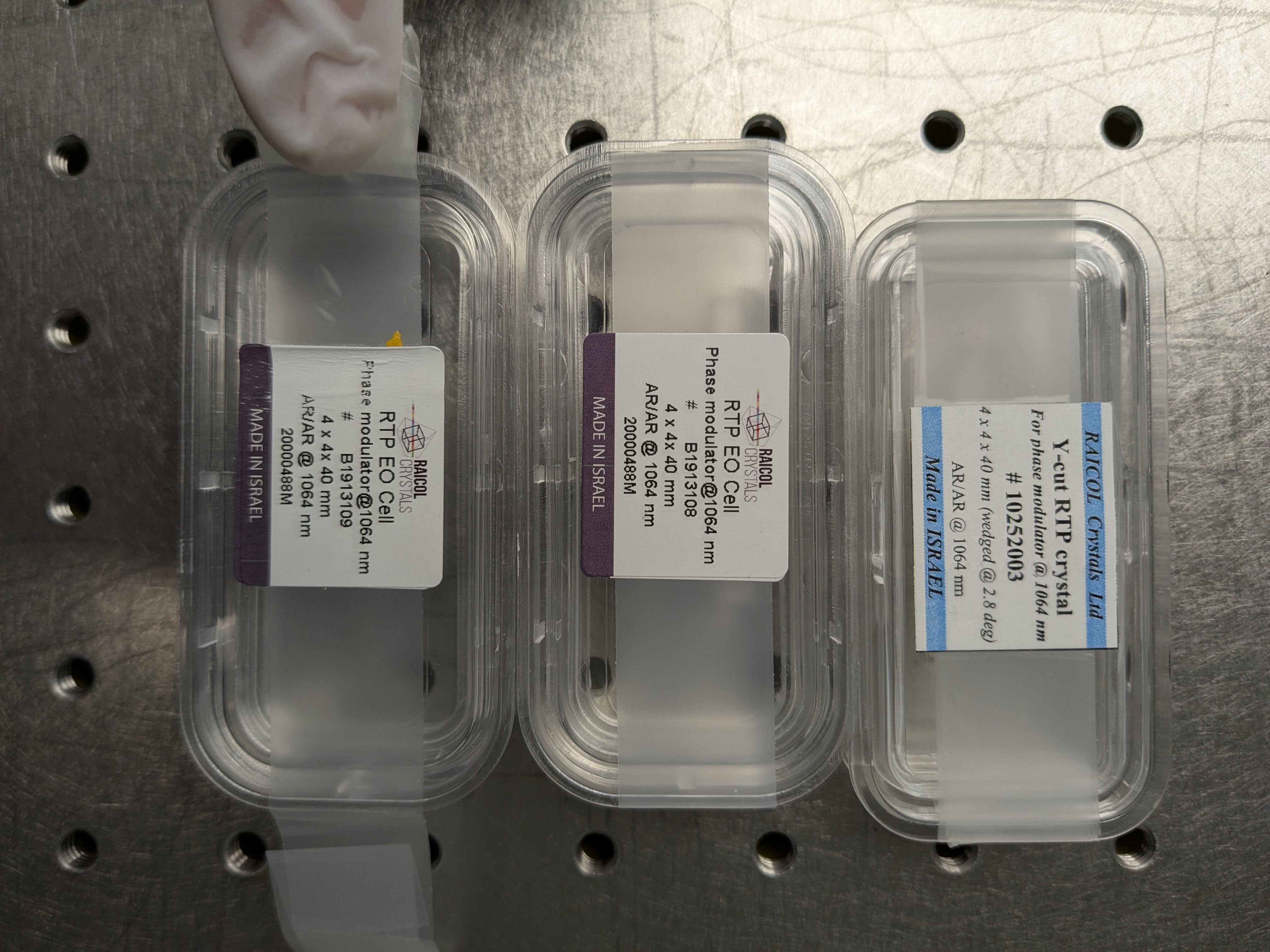 The third picture shows the containers for different RTP. Left is the one for the crystal in HAM1. The middle seems to be from the same batch. Right looks different, on the bottom of the container there's a label saying "I/O something something 2017" so this is likely the old one.