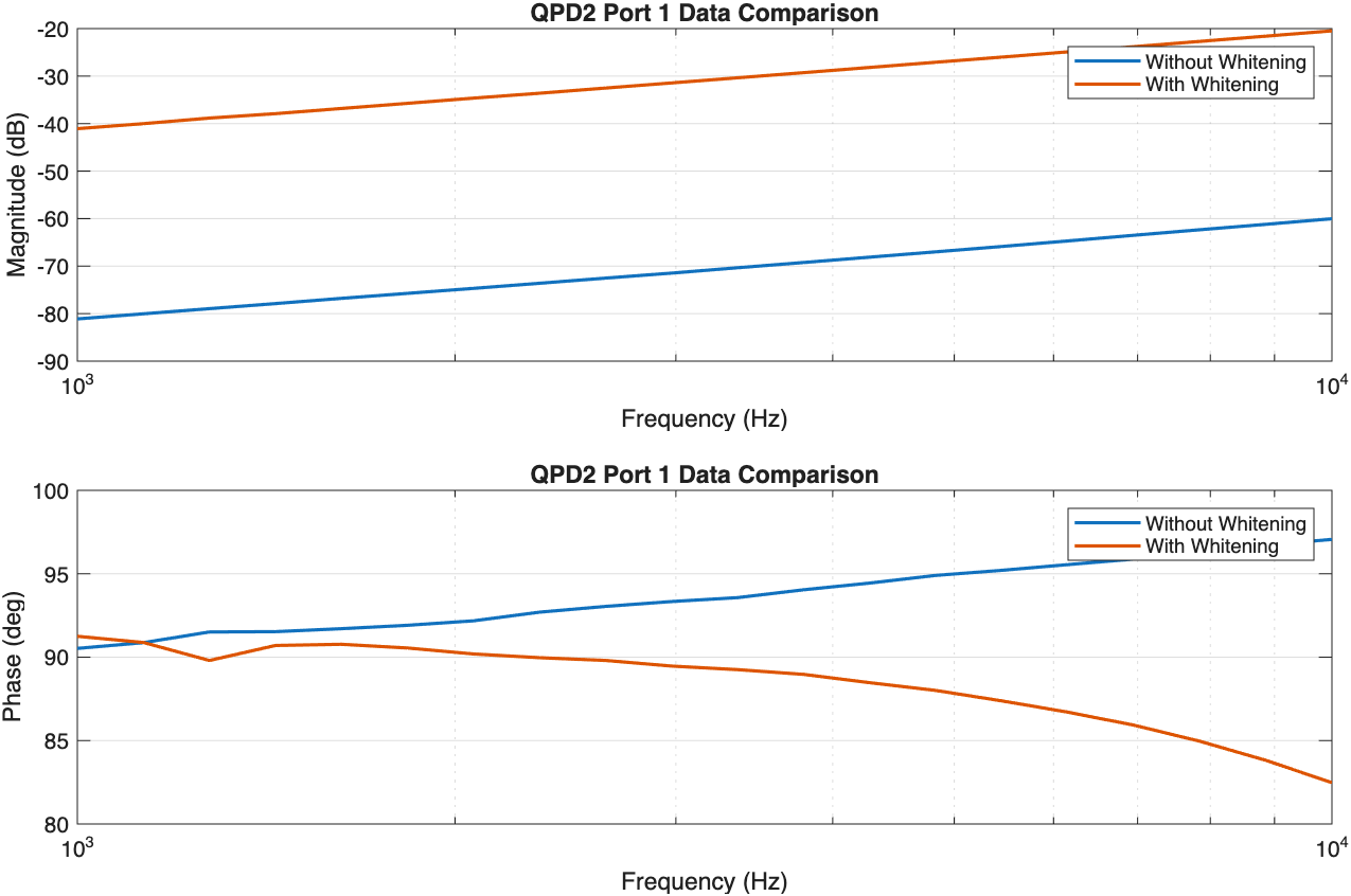 1. All the whitening filters were switched "on" inside the TIA, however our final design document states that only the QPDs need whitening. As such the SPD boards S2500647 and S2500645 whitening switches were set to bypass. I logged this change in the E-Traveler.
