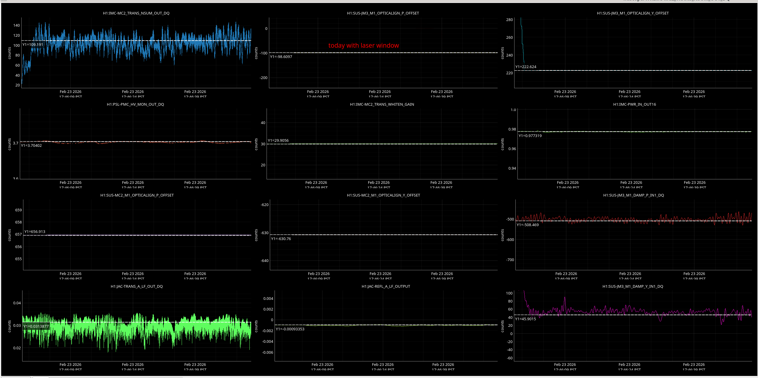 Tomorrow, we'll revisit the IMC alignment. We'll also measure the power coming into JAC TRANS PD as well as the actual transmission of JAC while locking it with RF so we can use JAC trans PD as the measure of the power into HAM1.