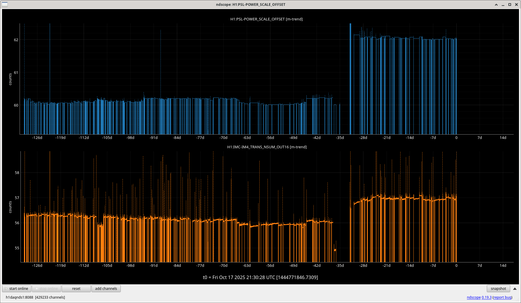 For each point the code returns the median of the time series at each step, this mioght be less valie for OMC-REFL as it is a lot noisier than ASC-AS_C.