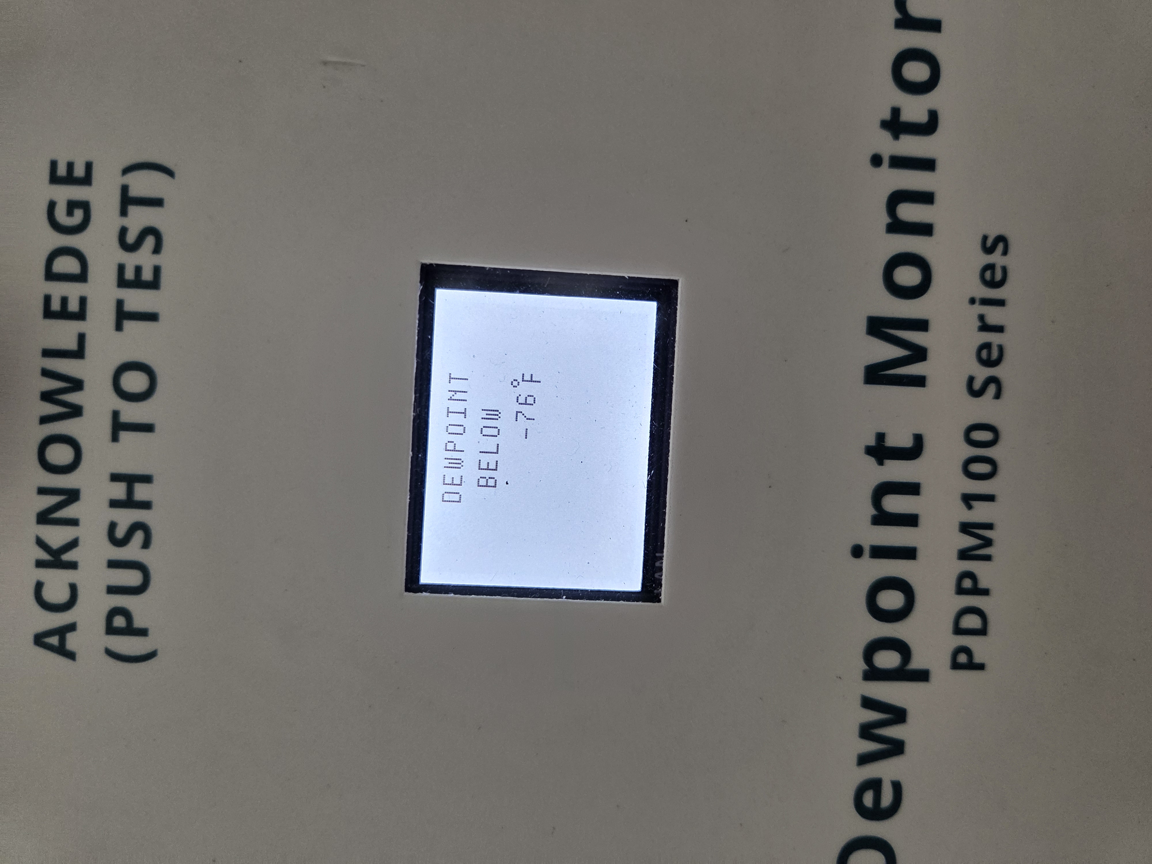 EY purge air compressor was ran for ~3 hours, dew point mointor quickly reached <-40 degF and at time of shut down was reporting -76 degF. New system, so there are only a few run hours. 3 hours total, distributed between the three scroll compressors.