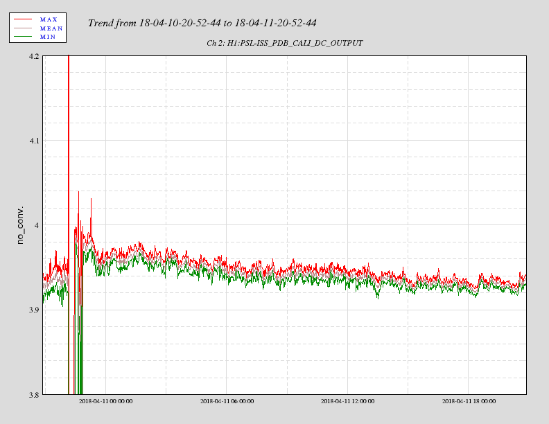 A couple of other plots that will come in handy for bringing the power stabilisation back on line. One shows the variation in the output power of the neoVAN amplifier. The other is essentially the variation in the pre-modecleaner output.