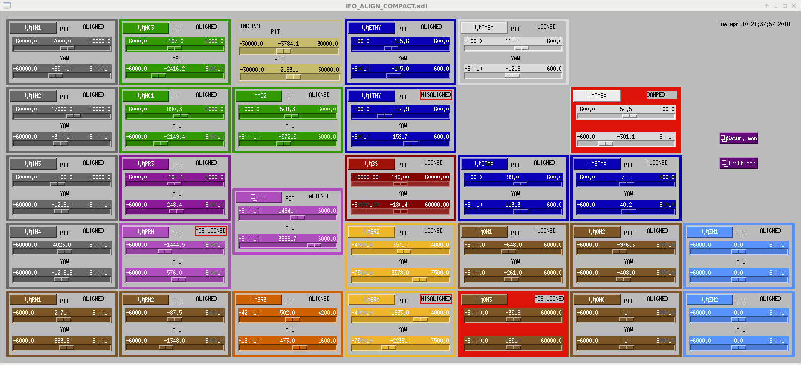 Final alignment values here. Note we did not change ITMX, BS, PR3 slider values.
