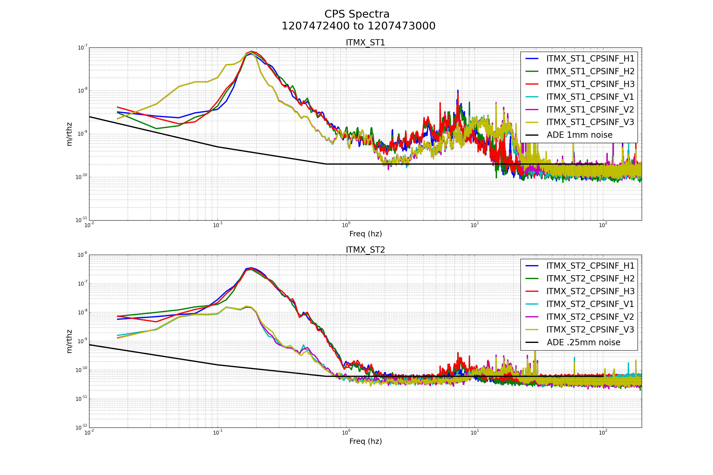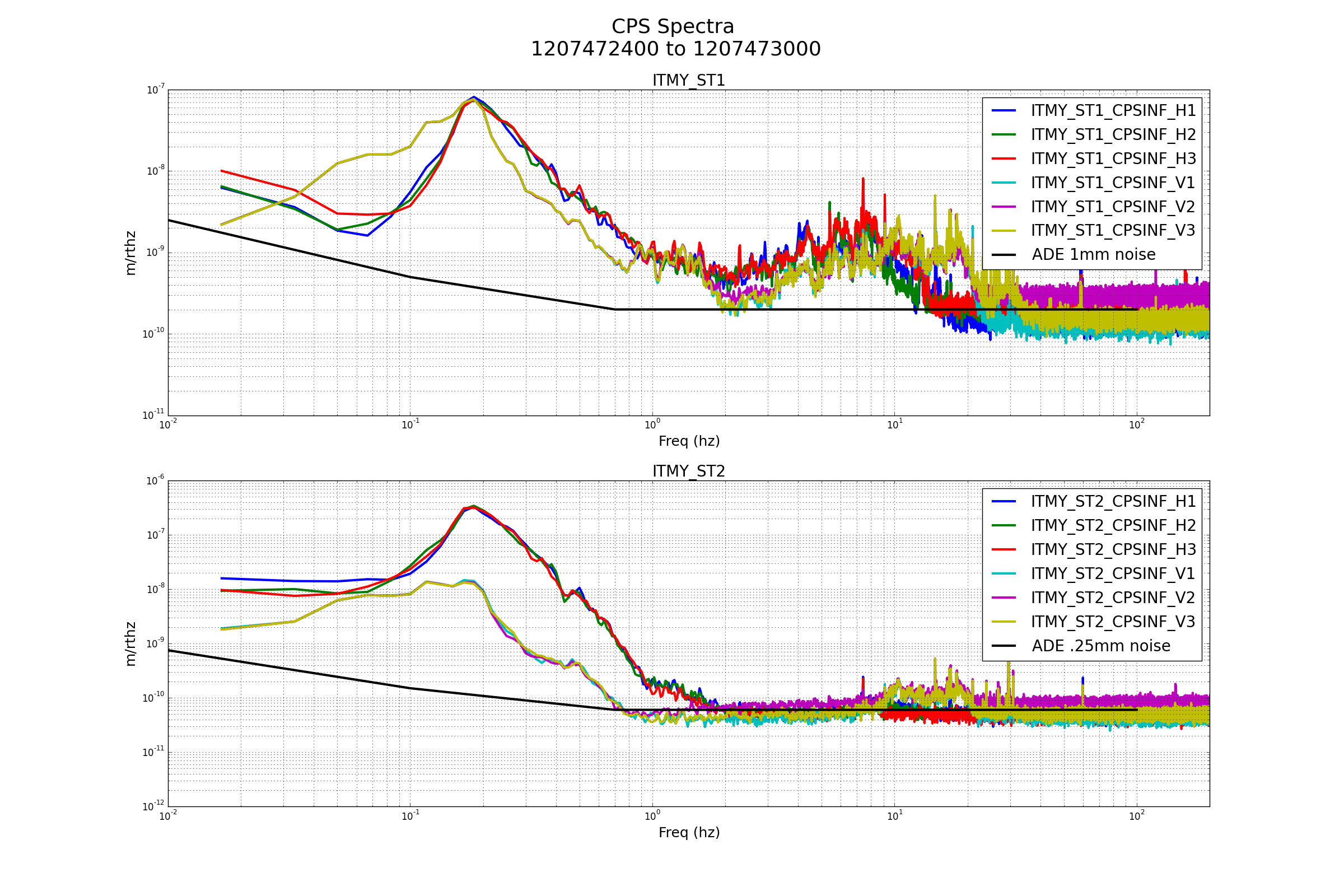 FAMIS 6945 The following signals appear high from visual inspection: BS_ST1_CPSINF_H1_I BS_ST2_CPSINF_H1_I BS_ST2_CPSINF_V1_I ITMY_ST1_CPSINF_V2 ITMY_ST2_CPSINF_V2 HAM3_CPSINF_V1 The script reports: ETMX_ST2_CPSINF_H1 high freq noise is high! ETMX_ST2_CPSINF_H2 high freq noise is high! ETMX_ST2_CPSINF_H3 high freq noise is high! ETMX_ST2_CPSINF_V1 high freq noise is high! ETMX_ST2_CPSINF_V2 high freq noise is high! ETMX_ST2_CPSINF_V3 high freq noise is high!