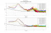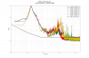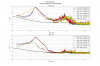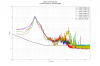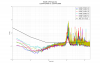We used the SR785 to take noise spectra with the plates grounded, and of the ambient electric field (or acoustic environmental noise) for the X and Y plates. These spectra are shown in the first plot, the y data have 25 averages while the X data has one. The grounded spectra are in agreement (the 60 Hz harmonics are present in the blue x trace also) which makes sense, however I’m not sure why there is a significant difference between the x and y ambient spectra.
