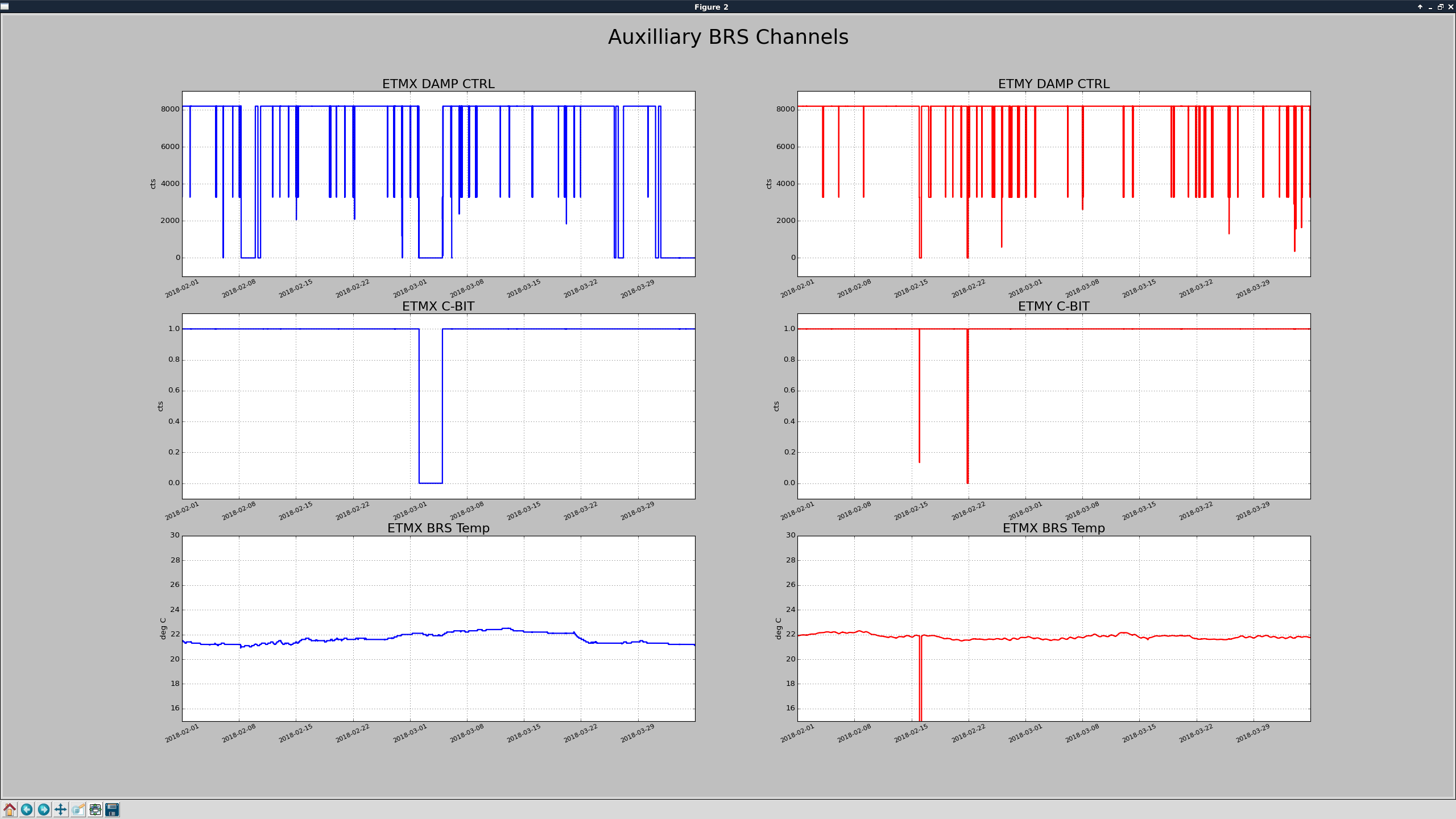 Otherwise, BRSY is getting close to going out of range, BRSX has gone out of range, but looks like it was due to a temperature excursion. I'm not sure we should do anything for either one, until the chamber work is done and the cleanrooms are turned off.