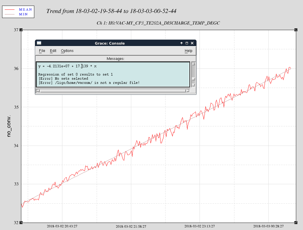 During CP4's bake-out, we would like to send cell phone alarms if the temperature's rate-of-change exceeds 1degC per hour. I'm testing a python script I wrote yesterday which accumulates data and reports the differences between the current value and those from various times in the past. During the testing phase both the code and its companion EPICS IOC are running on my workstation (zotws6).