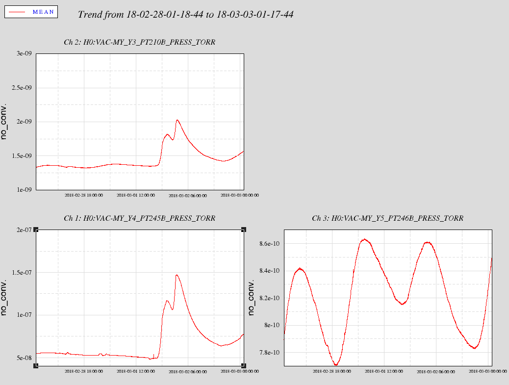 TITLE: 03/02 Day Shift: 16:00-00:00 UTC (08:00-16:00 PST), all times posted in UTC STATE of H1: Planned Engineering LOG: Jeff K. and Jim running B&K measurements of PCAL at end Y 16:27 UTC Corey to ISCT6 to fix door handle 16:39 UTC Sheila to optics lab to cover equipment in prep for facilities work 16:51 UTC Corey to optics lab to cover equipment in prep for facilities work 16:59 UTC Jeff K. and Jim back from end Y 17:09 UTC Jason and Ed to PSL enclosure 17:19 UTC Terry to ISCT6 to work on beam path 17:25 UTC Rick to end X to put lock and tag on PCAL laser in prep for vent 17:31 UTC Travis to end Y, in chamber work 17:49 UTC Chandra to mid Y 17:54 UTC Karen at mid Y 18:00 UTC Karen leaving mid Y to retrieve vacuum from corner station 18:17 UTC Karen back at mid Y 18:24 UTC Sheila and Corey out of optics lab 18:24 UTC Travis back from end Y 18:31 UTC Marc to LVEA for cosmic ray testing 18:31 UTC Nutsinee to ISCT6 18:50 UTC Matt H. to PSL 19:05 UTC Karen leaving mid Y 19:11 UTC Signed WP 7395. Sheila making model changes, no restarts 19:36 UTC Nutsinee back 19:38 UTC Tumbleweed thrashing near corner station 20:02 UTC Delivery from Apollo 20:02 UTC Jeff K. to optics lab 22:09 UTC Matt H., Ed and Jason out of PSL enclosure for lunch 20:10 UTC Jeff K. out of optics lab 20:55 UTC TJ and Travis to HAM6 21:08 UTC Marc and Elizabeth to LVEA to work on cosmic ray 21:15 UTC Sheila to LVEA to look for headsets 21:18 UTC Ed and Jason to PSL enclosure 21:23 UTC Sheila to end Y to look for headsets 21:23 UTC Matt H. to PSL enclosure 21:24 UTC TJ and Travis out of HAM6 21:32 UTC Marc and Elizabeth back 21:44 UTC Filiberto and Elizabeth to end Y for SUS ground loop checking, then pulling fiber from patch panel in VEA to fan room for access control system 21:48 UTC Sheila back 21:54 UTC Hugh and Mark to LVEA 21:57 UTC Sheila to HAM6 to install fibers 22:00 UTC Nutsinee to find Sheila in LVEA 22:10 UTC Travis moving equipment from end Y to end X 23:07 UTC Travis back 23:24 UTC Greg leading tour into CR 23:36 UTC Greg leading tour out of CR to overpass 00:10 UTC Cheryl to PSL enclosure, WP 7393 00:24 UTC Filiberto and Elizabeth back