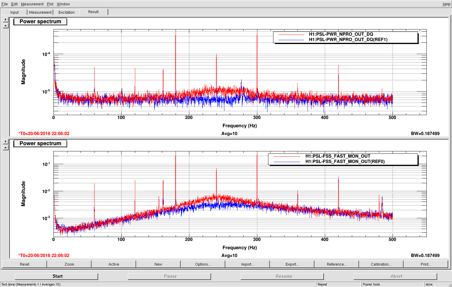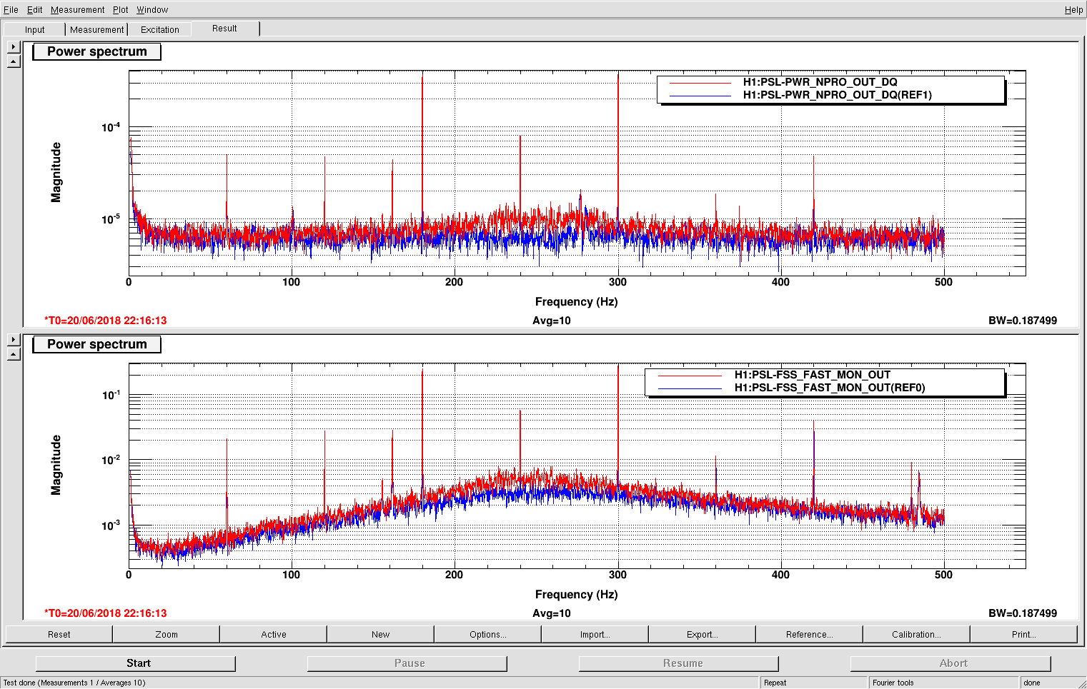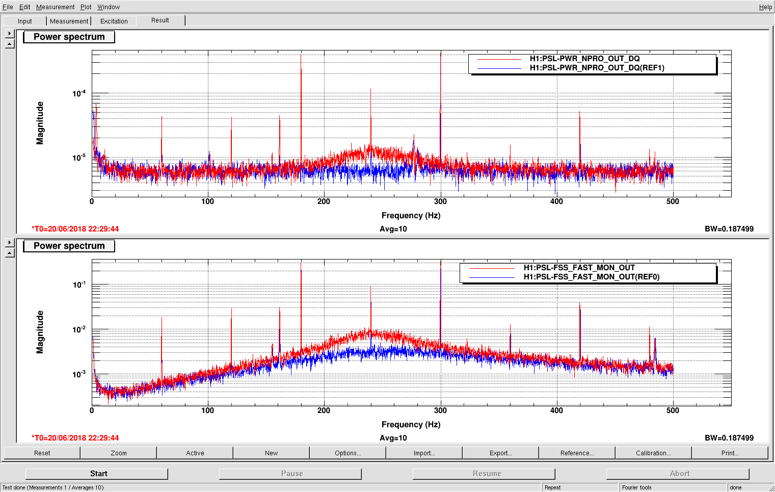 Whilst doing so, spectra of the NPRO power noise and of the FAST actuator were taken whilst the FSS was locked.